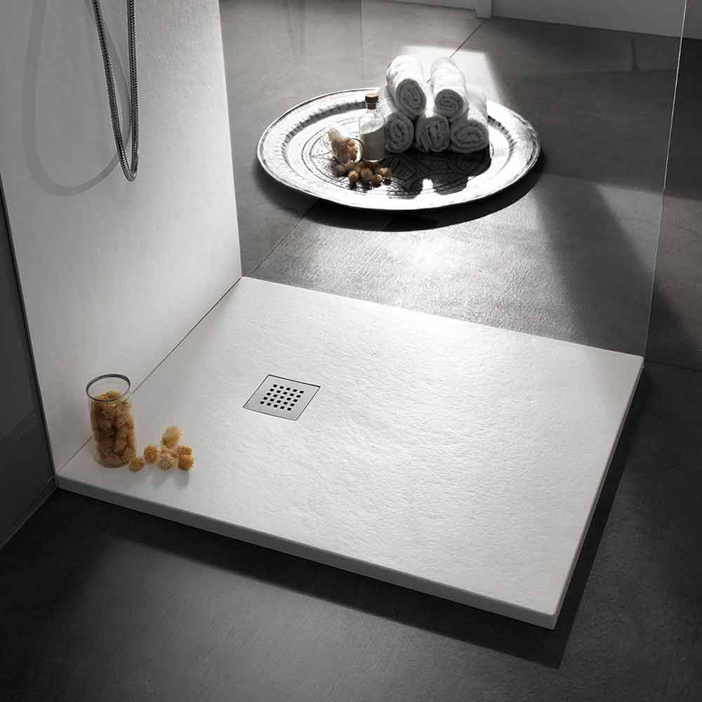 Tabaka dushi katrore e bërë nga rrëshirë me një përfundim me efekt guri . Plotësoni me hekura çeliku dhe kullojeni. Karakterizuar nga linja të thjeshta dhe minimale që përshkojnë tërë dizajnin, ky artikull paraqitet si zgjidhja perfekte e mobilimit të banjës për stilin dhe funksionalitetin . Përmasat dhe forma e saj katrore ju lejon të pajisni me personalitet edhe ambiente që kanë hapësira të kufizuara në dispozicion, ku nuk do të jetë e nevojshme të hiqni dorë nga një dizajn modern dhe elegant. Rrëshira, e përdorur së bashku me përzierjet e tjera minerale, garanton rendiment të shkëlqyeshëm me kalimin e kohës, si dhe cilësi dhe besueshmëri të pashembullt.