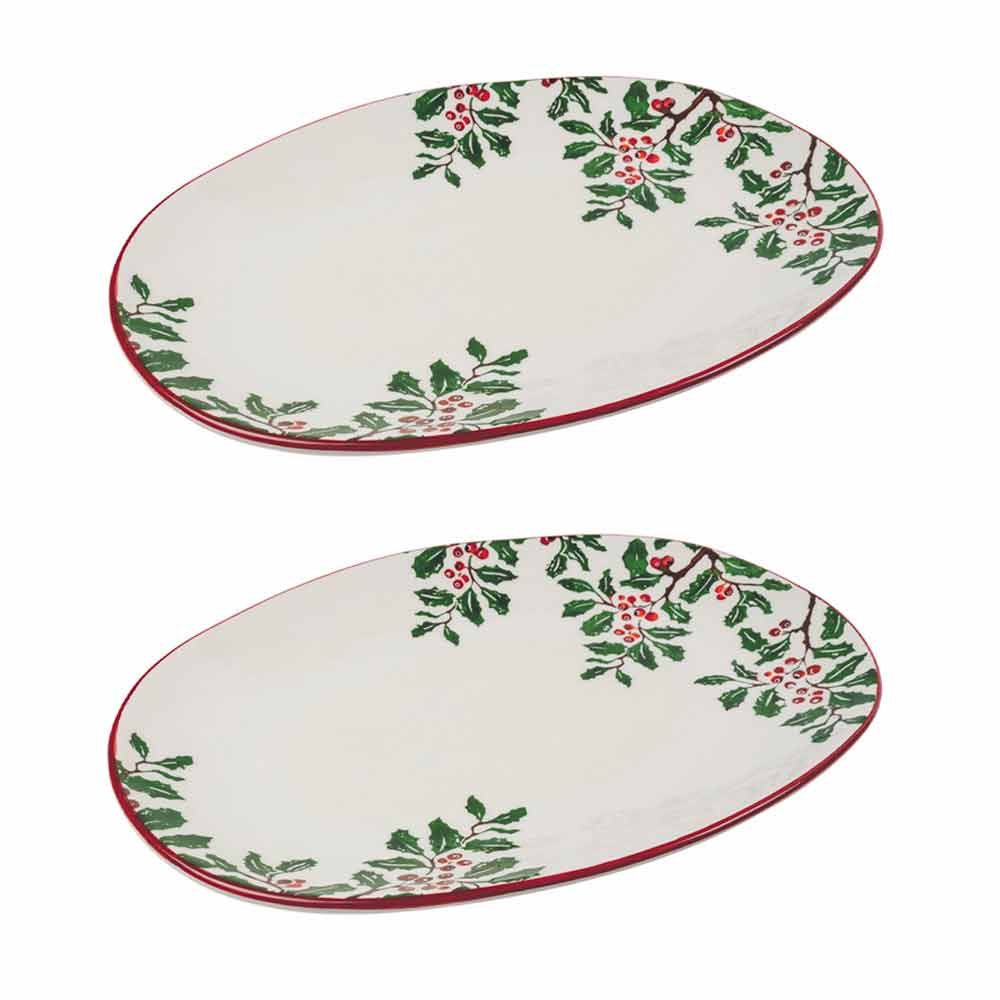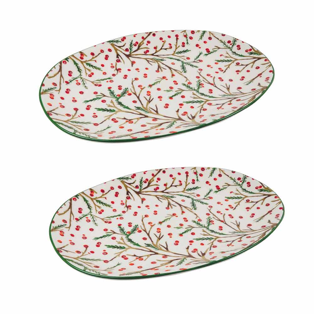 2 tabaka ovale për Krishtlindje në dolomit me zbukurime për të zgjedhur kokrra të kuqe ose kasap.