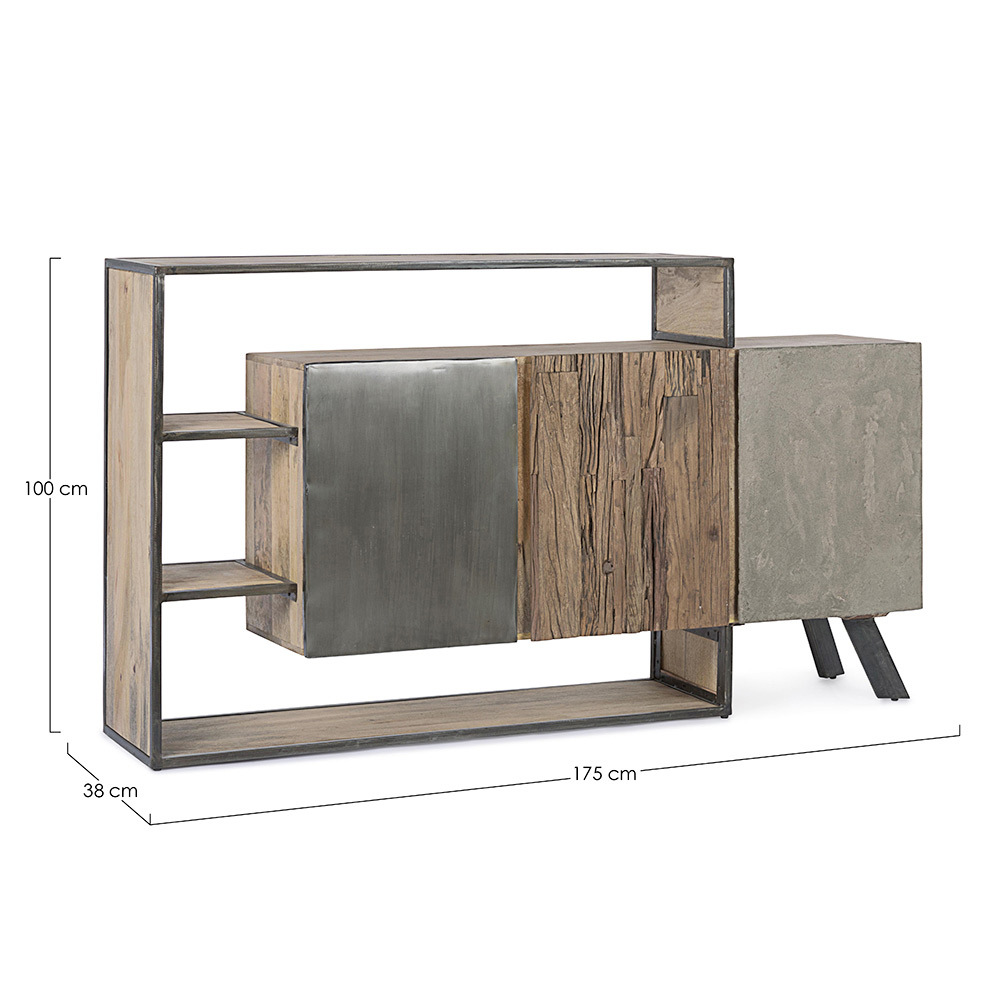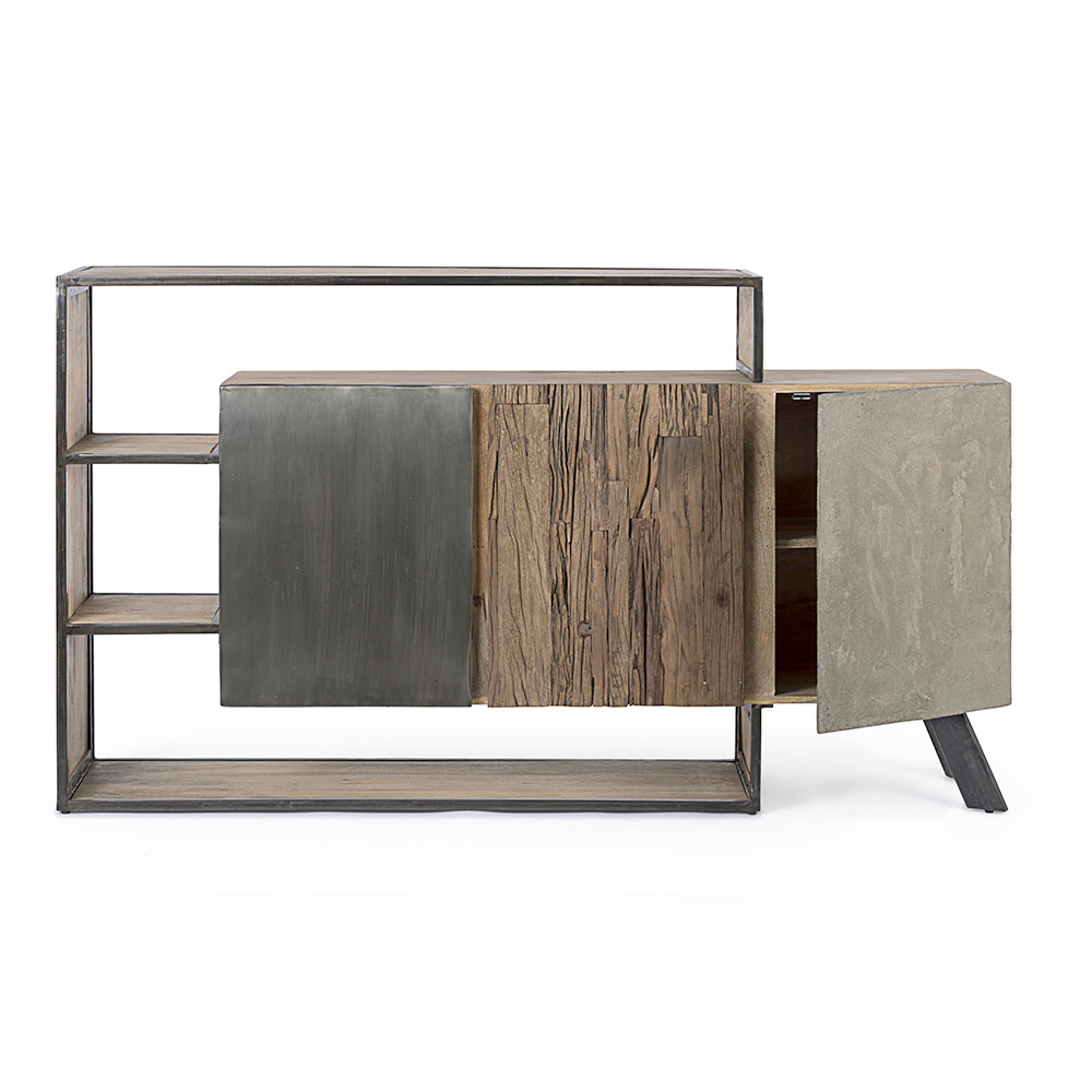 Bufe në dru mango dhe çelik me 3 dyer të stilit etnik.