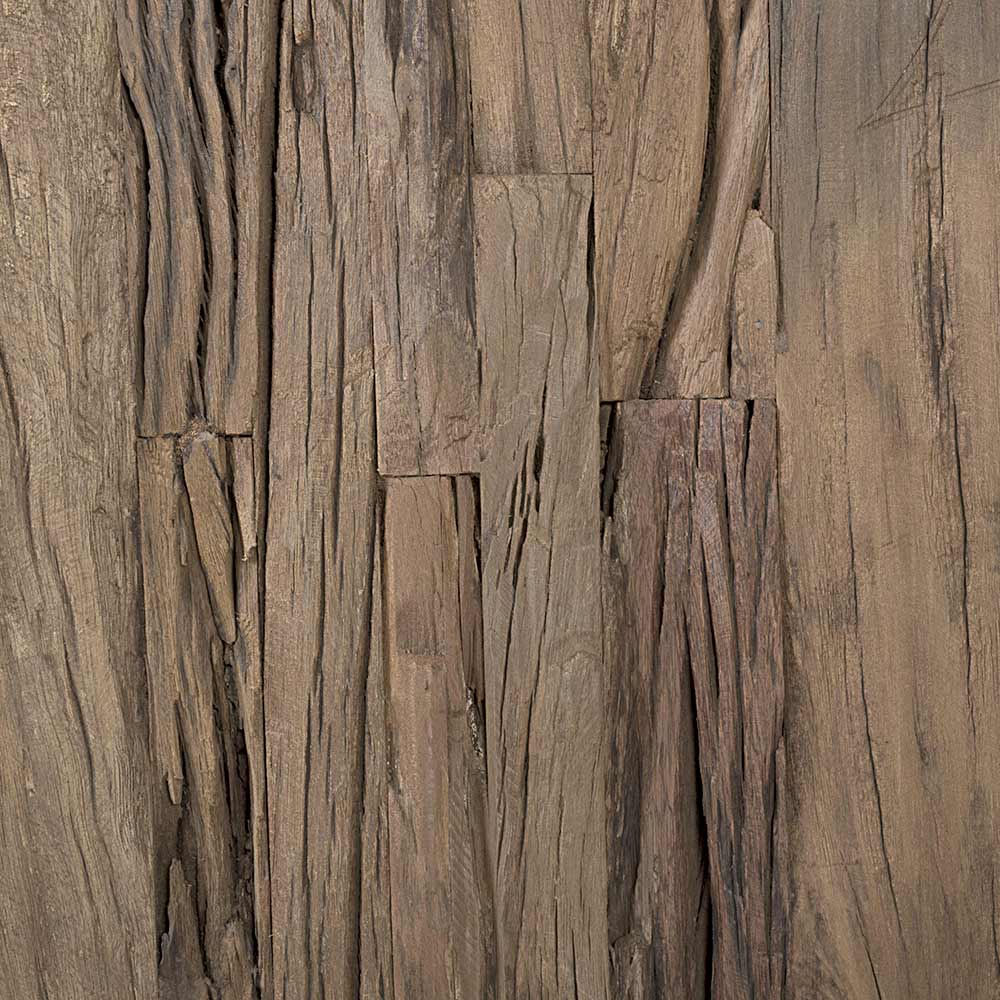 Të 3 dyert janë prej druri të ricikluar , fletë çeliku dhe fibra çimentoje : veçantia e mobiljeve konsiston pikërisht në praninë e kunjave prej druri të llojeve dhe ngjyrave të ndryshme.