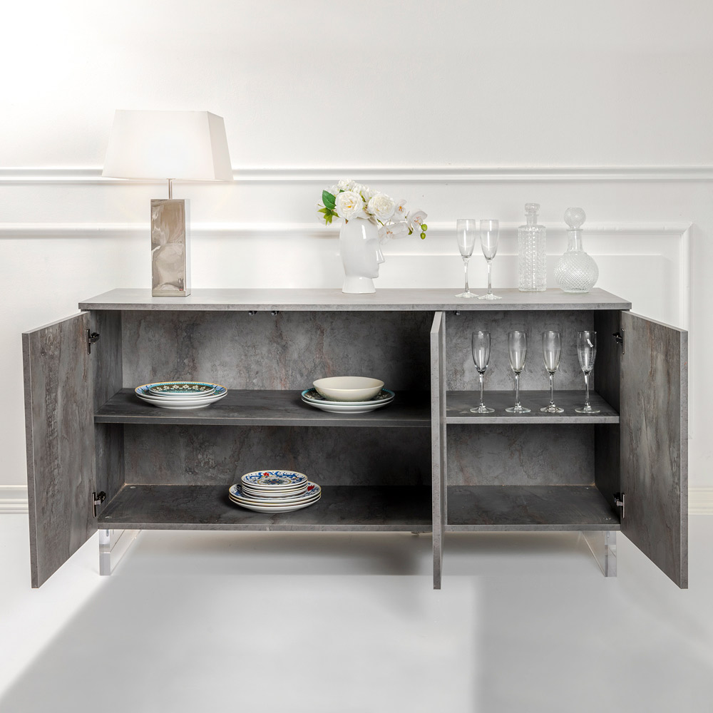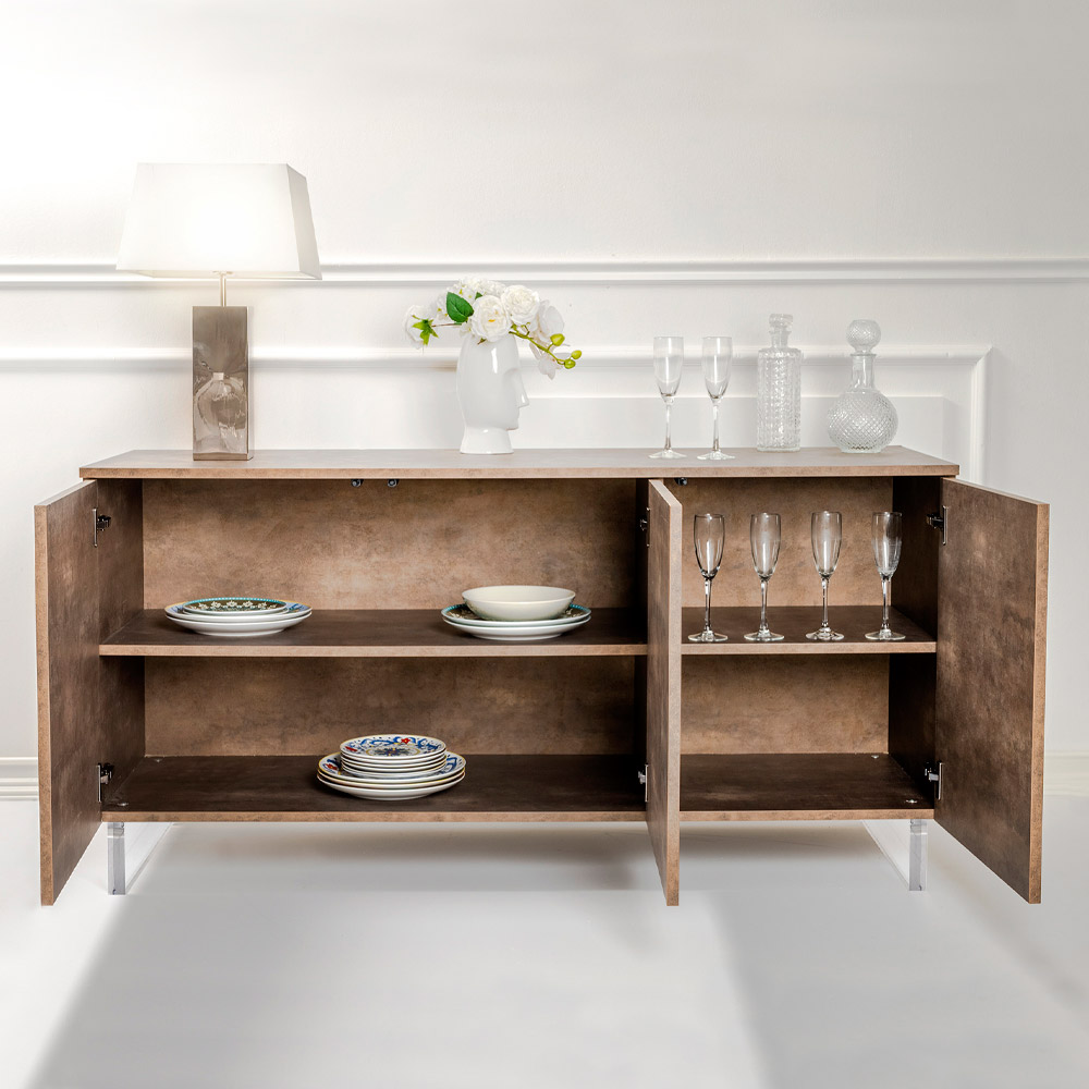 Sipërfaqja premton të ruajë shkëlqimin e saj origjinal, një gur themeli që siguron investimin tuaj me kalimin e kohës. Me funksionalitetin e krijuar për nevojat e përditshme, ky bufe ofron hapësirë bujare për të organizuar më mirë çdo objekt, ndërsa eleganca e dizajnit e bën atë një protagonist të padiskutueshëm në mjedisin tuaj.