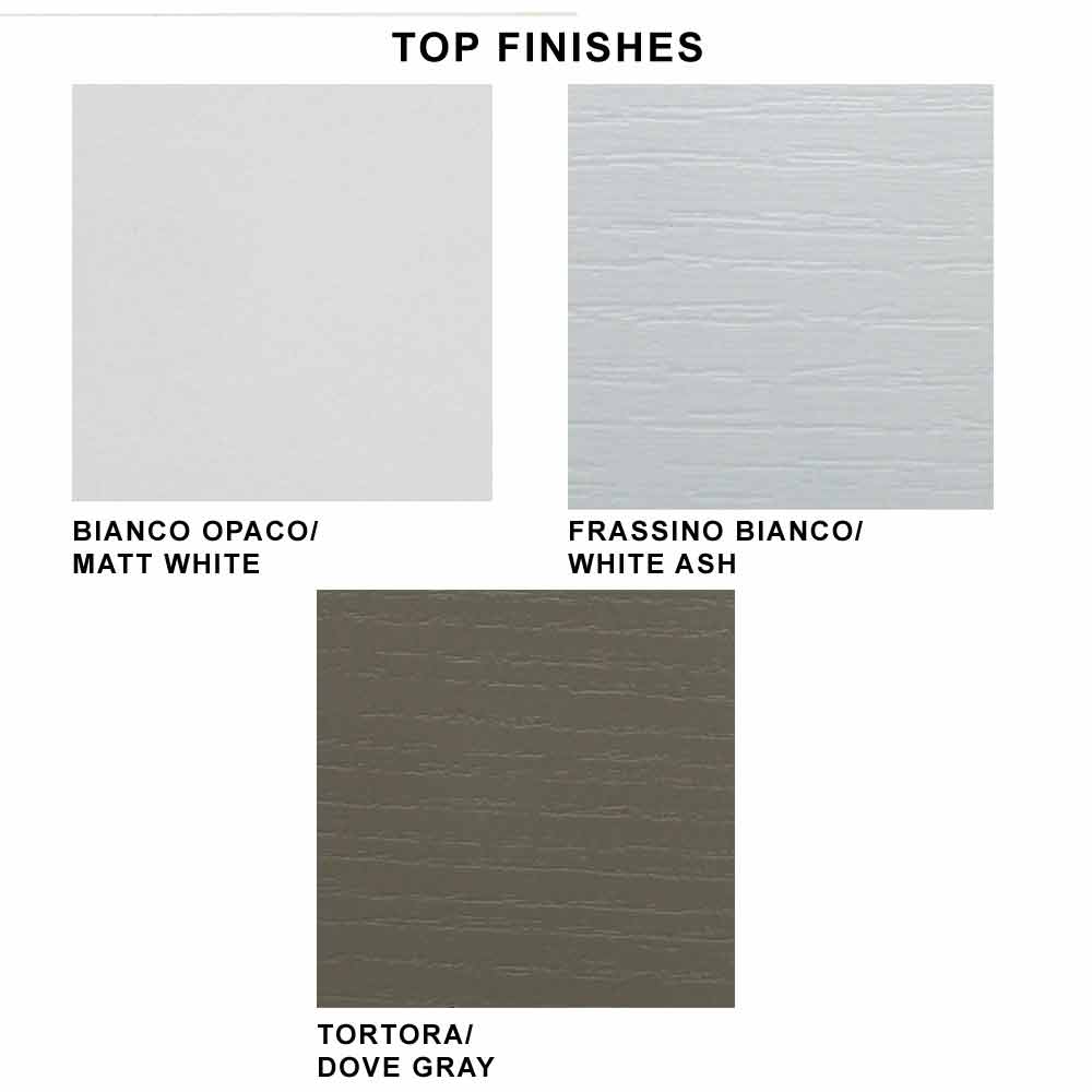 çeliku të bardhë ose të lakuar me grafit. Përfundimet e disponueshme për pjesën e sipërme:- sipër me melamine të bardhë mat me llak;