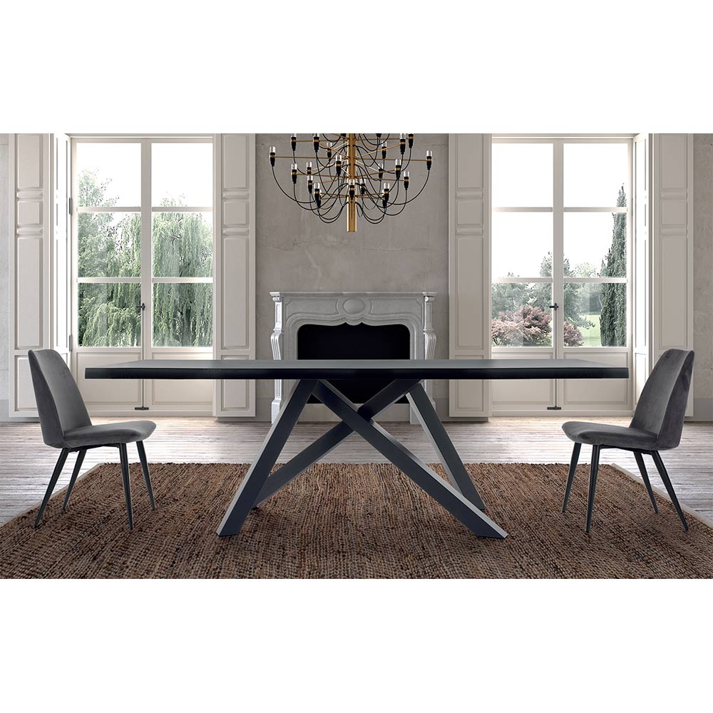 Tavolina e ngrënies drejtkëndore Settimmio karakterizohet nga linja të forta, të forta dhe rezistente, të afta për t'u përshtatur si me kontekstet klasike të arredimit ashtu edhe me mjediset më moderne dhe bashkëkohore. E punuar me dorë në Itali me materiale cilësore të shkëlqyera dhe 100% e prodhuar në Itali. Karakterizohet nga një majë druri me rimeso me buzë të parregullta të zhveshurdhe një bazë prej ari, floriri rozë ose çeliku të lakuar me grafit.