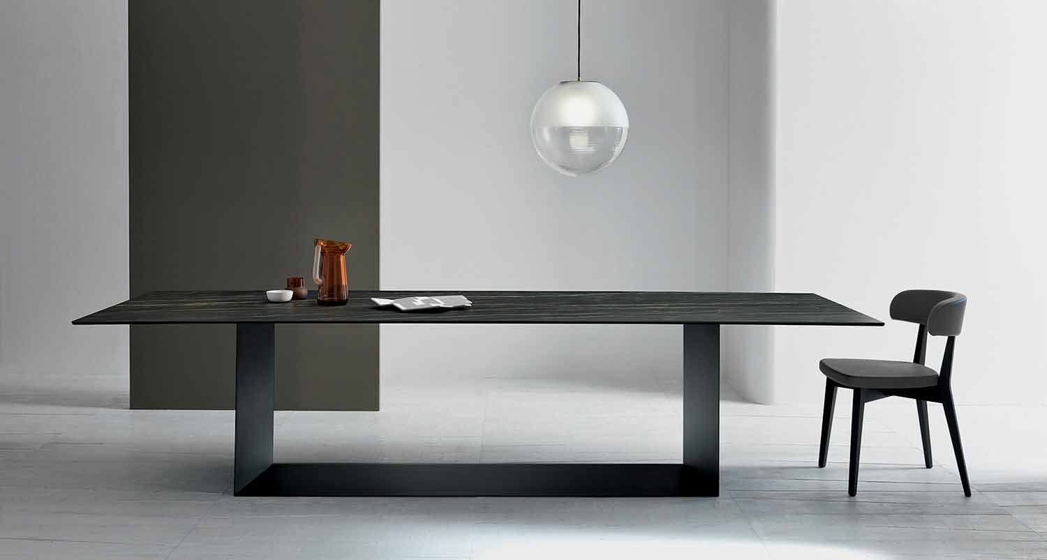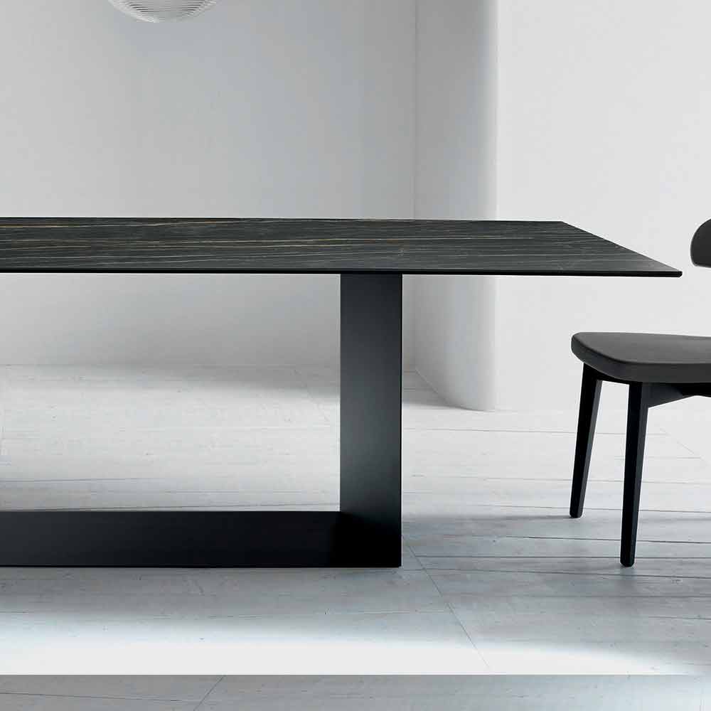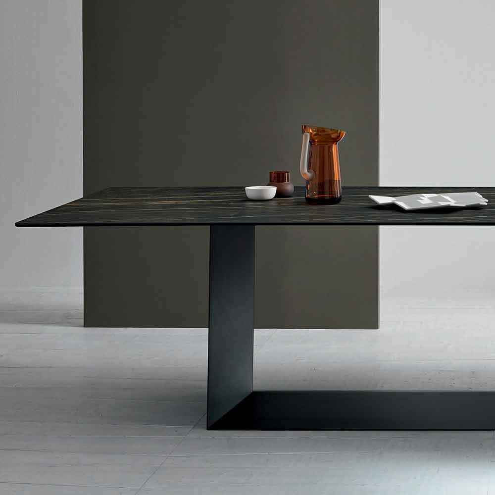 Tabela e projektimit të jetesës në qeramikë me mat Noir Desir dhe baza në grafit mat me ngjyrë të zezë ose bronzi të bronzuar me bronz, të bërë në Itali.