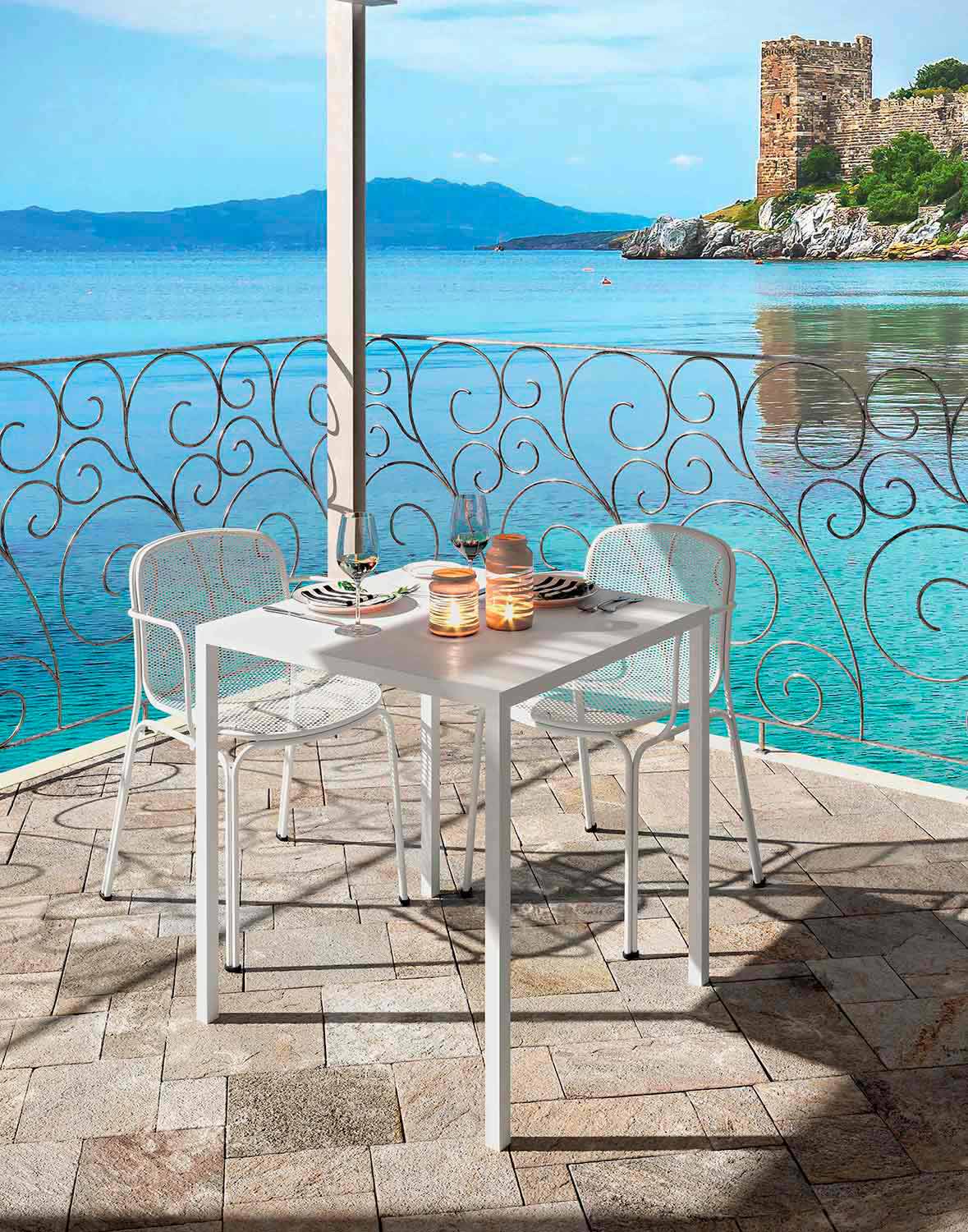 Tavolina e kafesë Benedict karakterizohet nga një dizajn minimal, por elegant që i përshtatet më së miri ambienteve shtëpiake, por gjithashtu dhe mbi të gjitha, në ambiente të zakonshme siç janë bare dhe restorante brenda dhe jashtë. E bërë krejtësisht prej fletë metalike, Benedikti është i pajisur me një strukturë metalike tubuluese vetë-niveluese që e bën atë të përsosur edhe në dyshemetë pak të pabarabartë në natyrë. Availableshtë në dispozicion në 6 ndryshime ngjyrash dhe në dy madhësi të ndryshme.