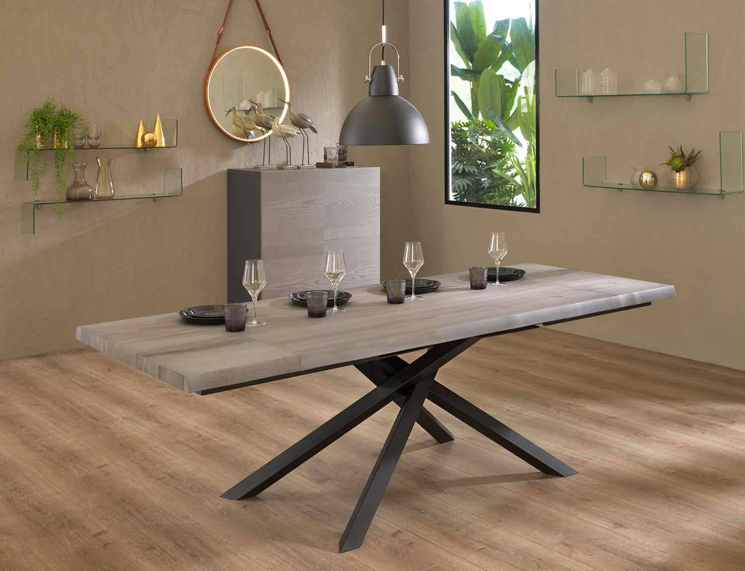 Xino është bërë me një bazë metalike të pikturuar të disponueshme në dy ngjyra dhe një majë druri gjithashtu të disponueshëm në dy përfundime të ndryshme dhe karakterizohet gjithashtu nga mundësia e zgjatjes deri në 240 ose 300 cm falë zgjatimeve të jashtme gjithashtu në rimeso gri, kështu duke marrë më shumë hapësirë dhe duke ju lejuar të prisni miq dhe të afërm pa u dashur të hiqni dorë nga rehatia.