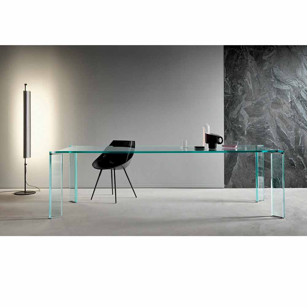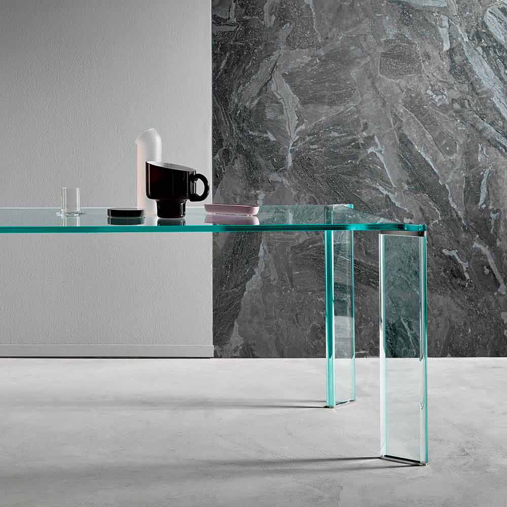 Bërë me një majë qelqi të petëzuar , këmbët janë bërë prej qelqi ekstra të pastër me trashësi 40 mm me pllaka fundore që lidhin këmbët dhe këmbët në çelik inox.