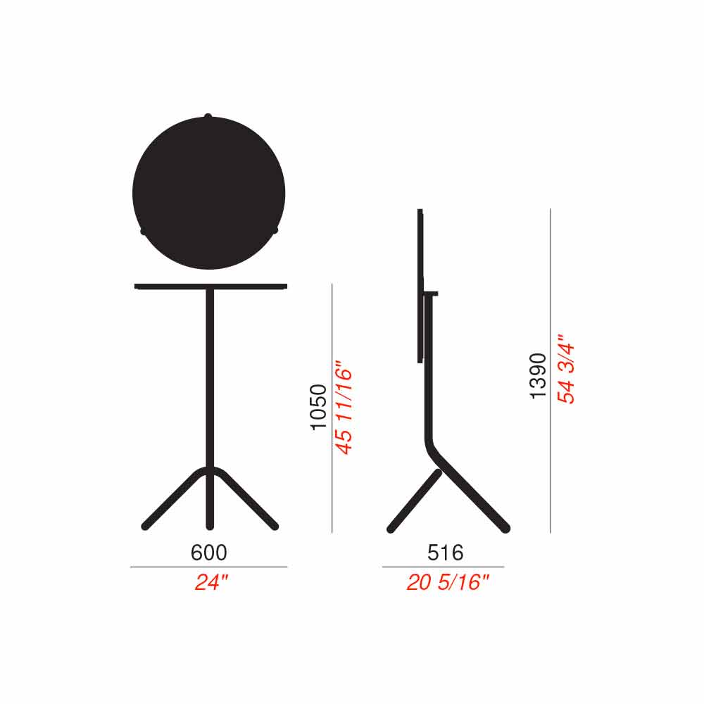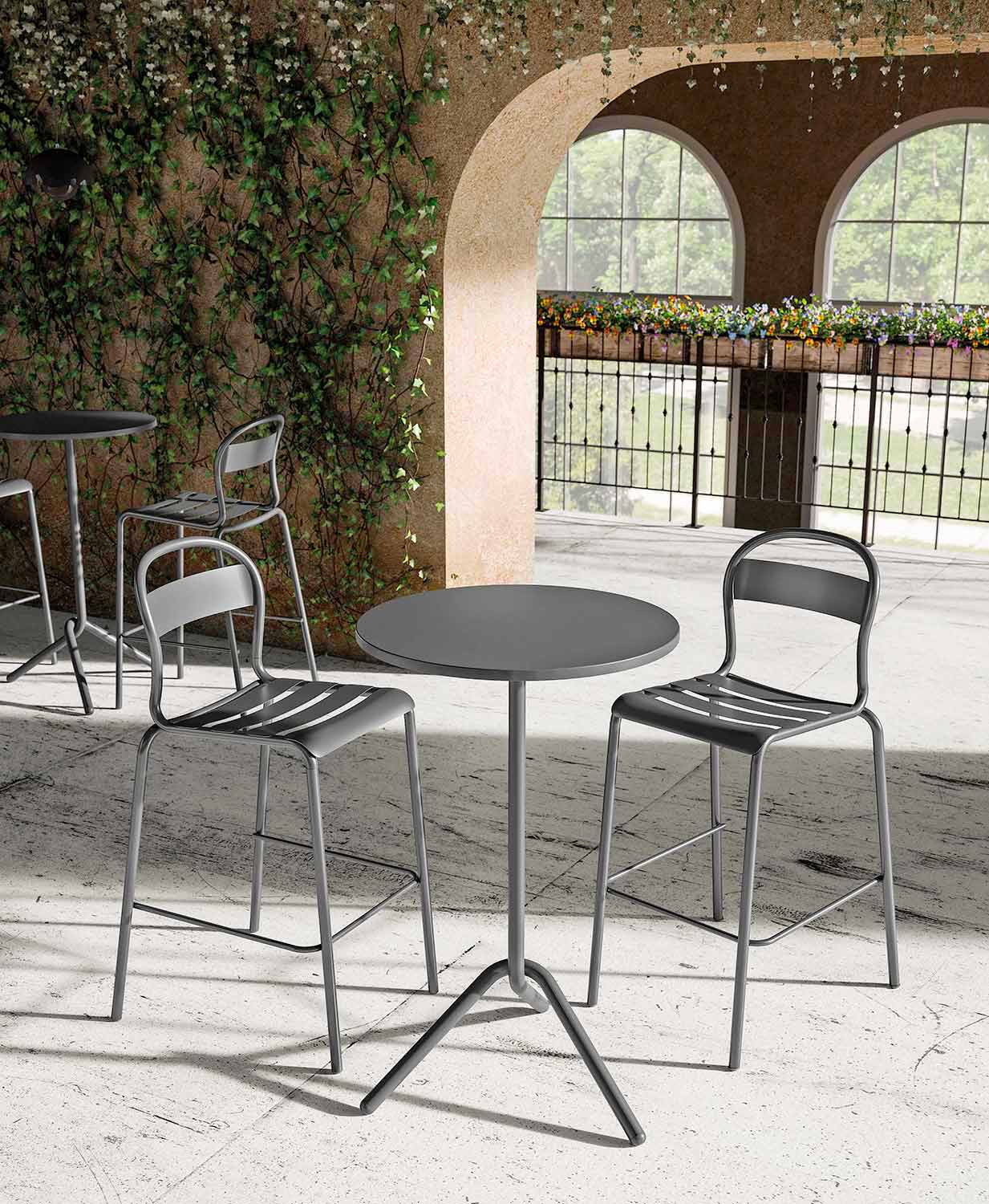 Tavolinë e lartë e rrumbullakët në natyrë në metal dhe fletë metalike stackable dhe të palosshme Made in Italy.