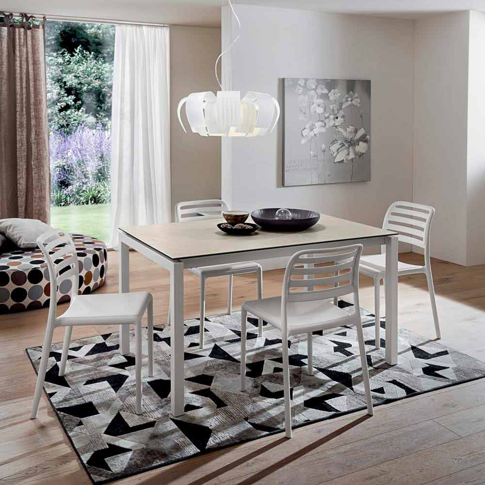 Tavolinë kuzhine me majë të zgjatshme prej laminam dhe metal Prodhuar në Itali.