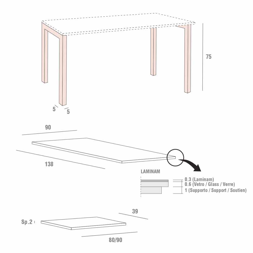 2 shtesave prej 39 cm secila të bëra në hpl të cilat lejojnë të strehojnë një numër më të madh njerëzish për dreka të mrekullueshme ose darka me miqtë, duke rritur kështu