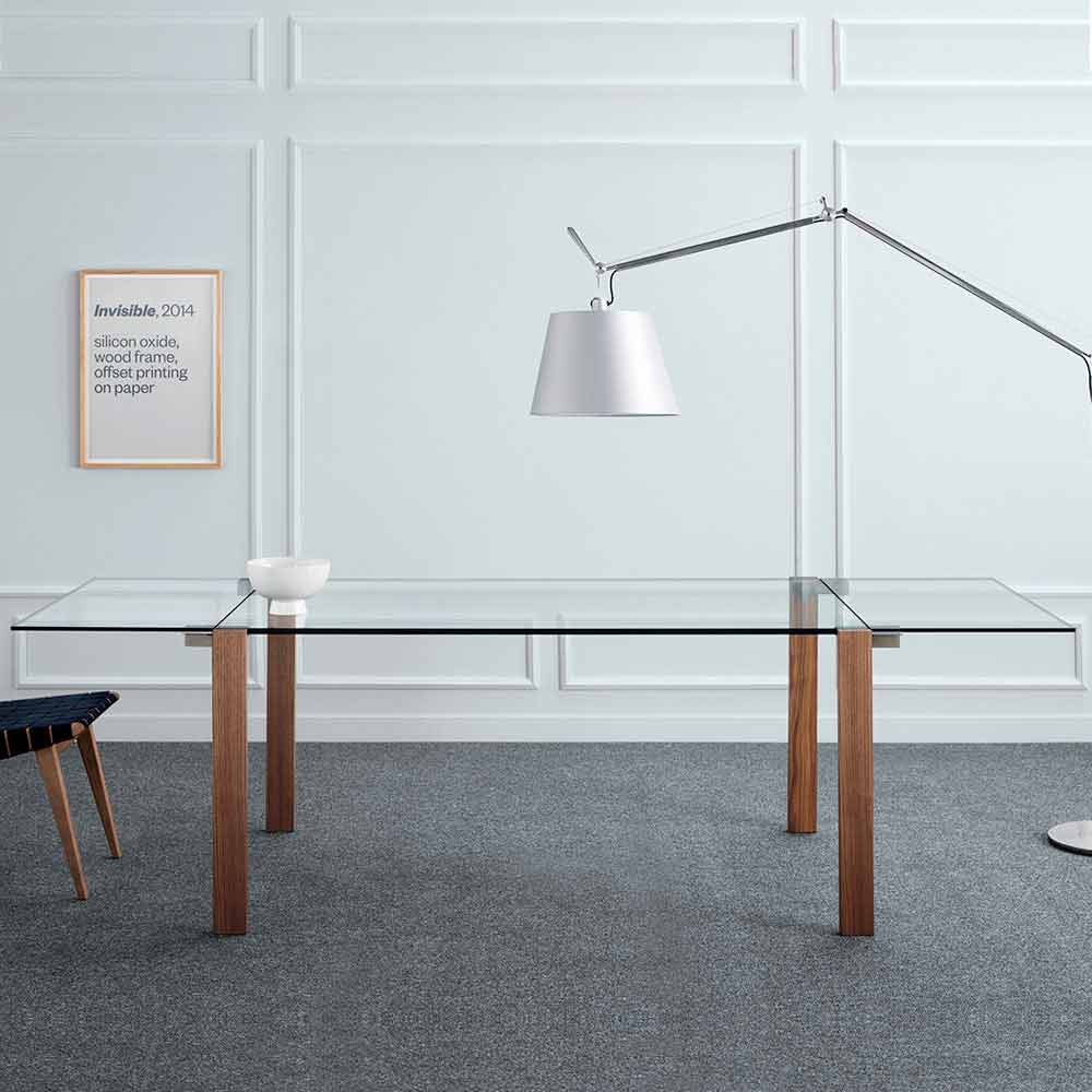 Tabela transparente e qelqit që zgjatet deri në 12 vende me bazë arre prej metali ose kanellë, e bërë në Itali.