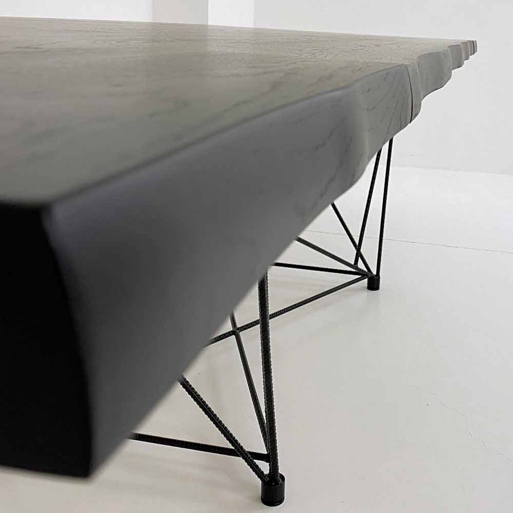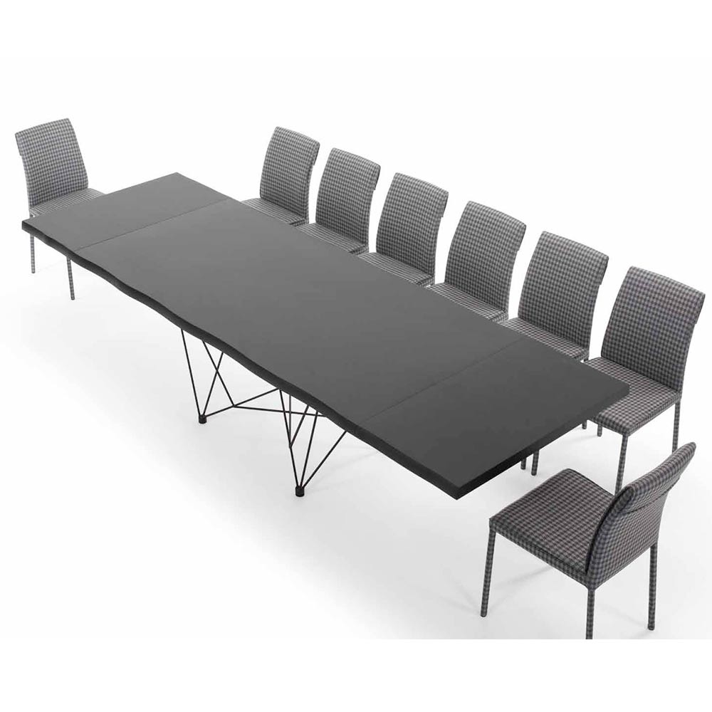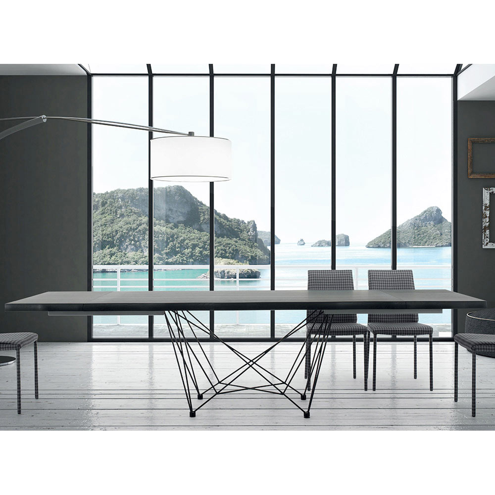 Tavolinë moderne e zgjatur deri në 300 cm me majë druri të rimesuar dhe bazë çeliku të zezë prodhuar në Itali.