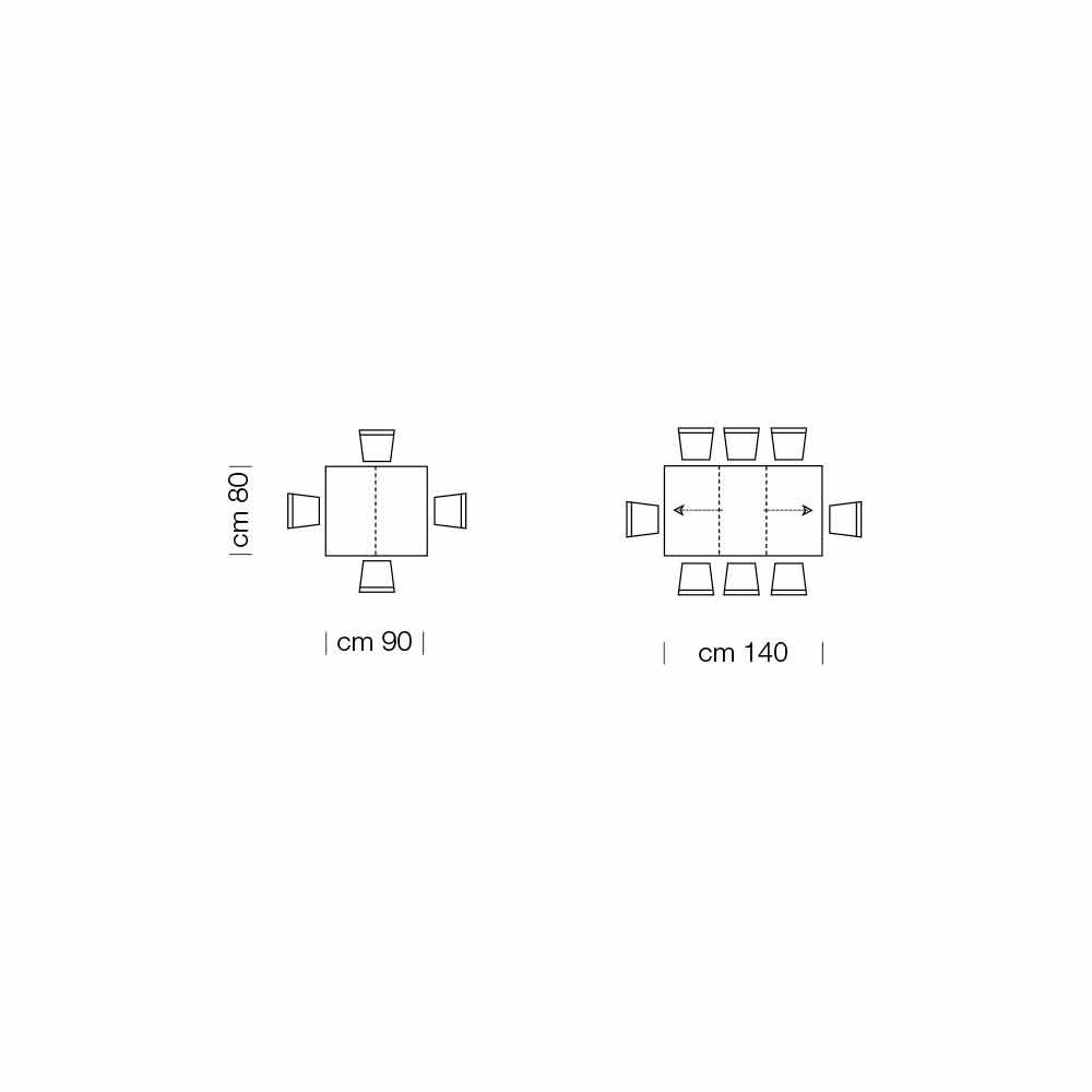 L 90 (140) x D 80 x H 77 cm 8 ndenjëse të zgjatura me një zgjatim të brendshëm 50 cm;