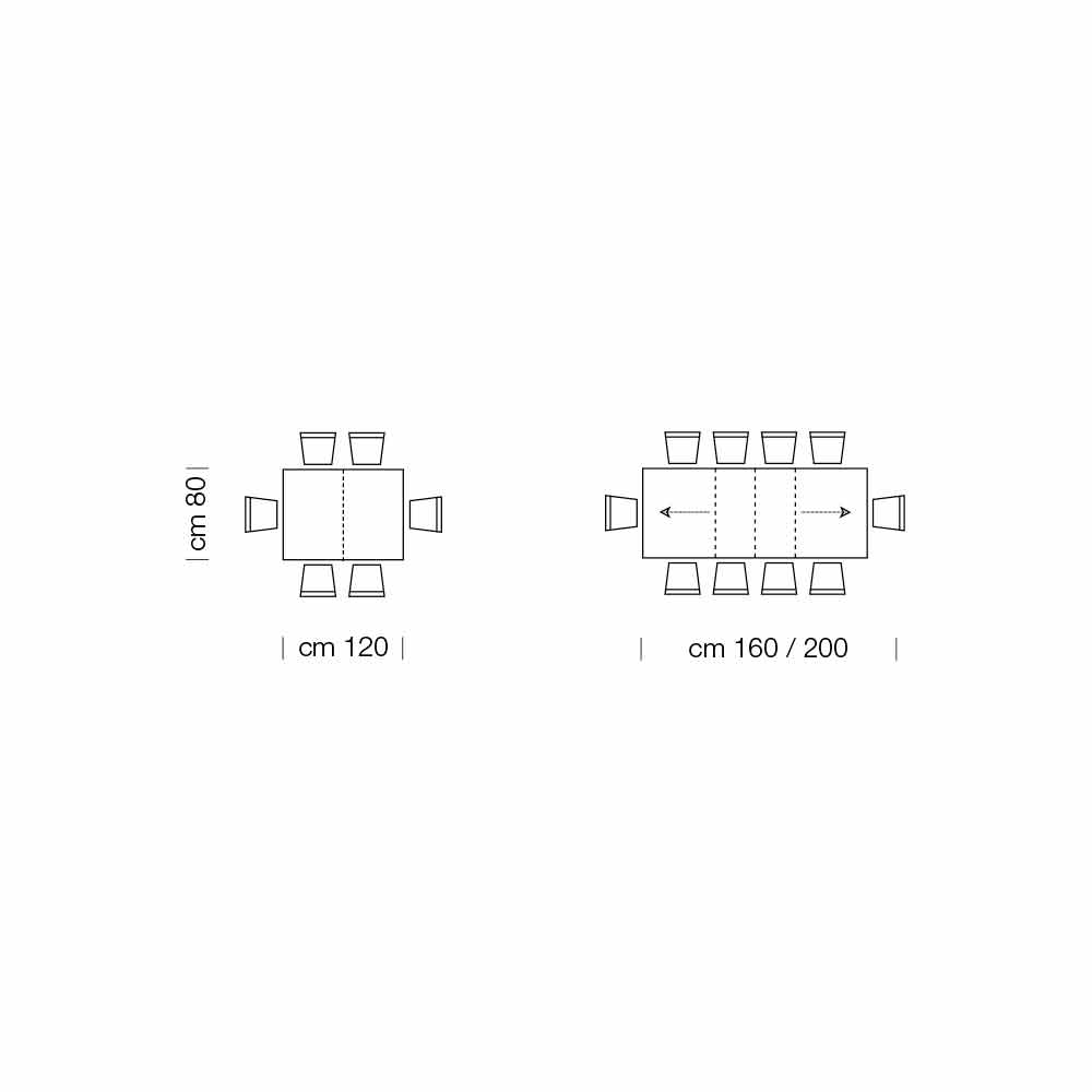L 120 (200) x D 80 x H 77 cm me 10 vende të zgjatura me dy zgjatime të brendshme 40 cm;