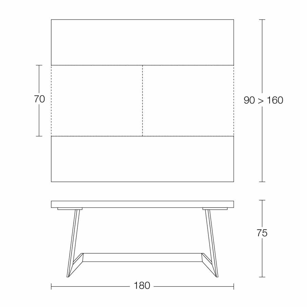 - W 180 x 90 (160) x Lartë 75 cm