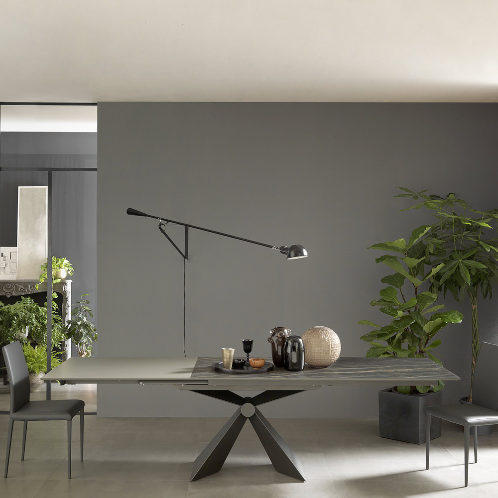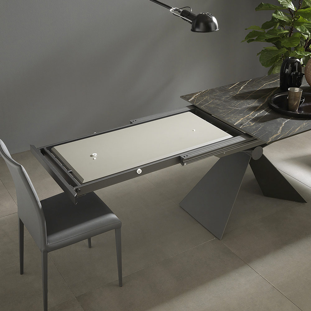 Tavolinë ngrënieje moderne e zgjatur prej qeramike dhe metalike Prodhuar në Itali.