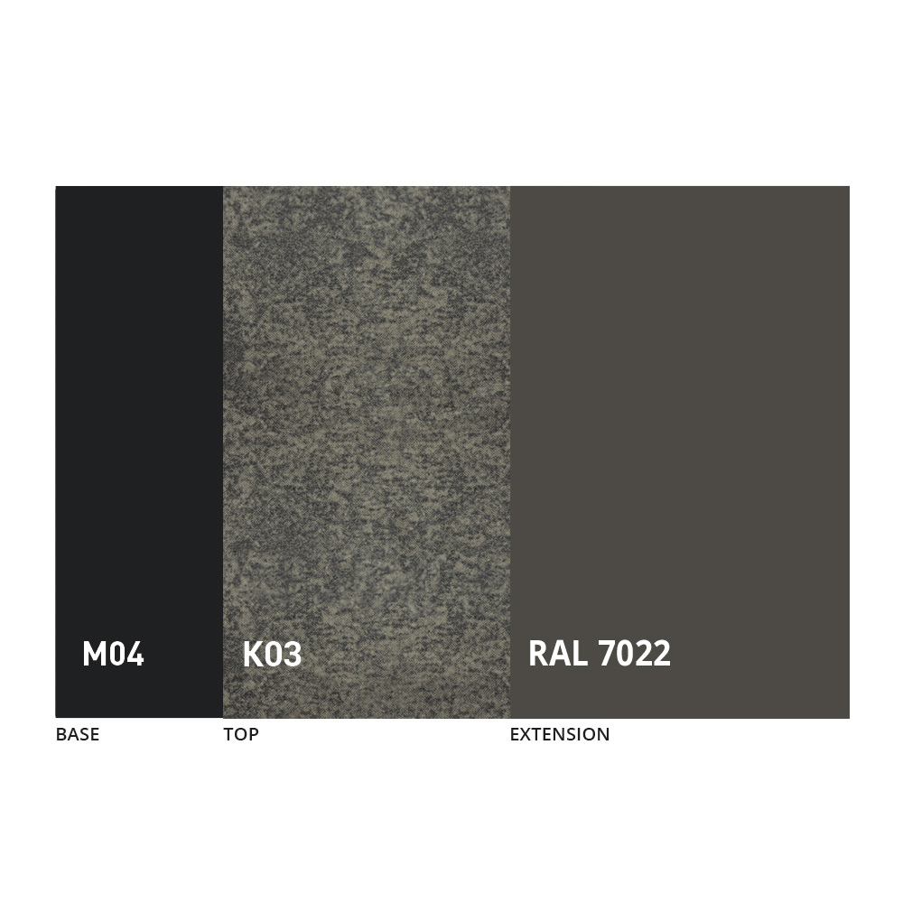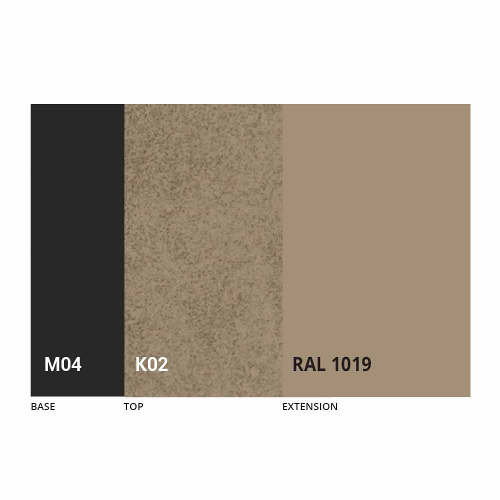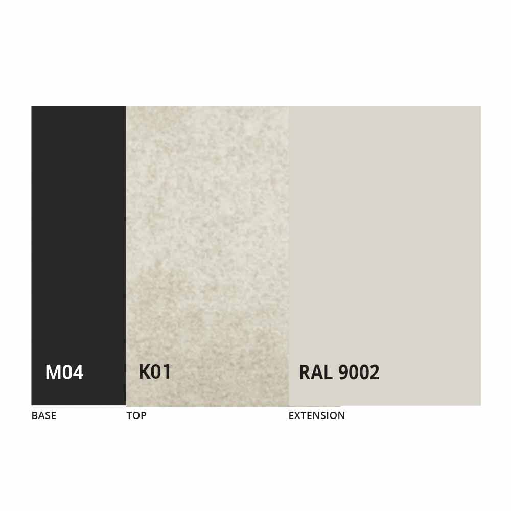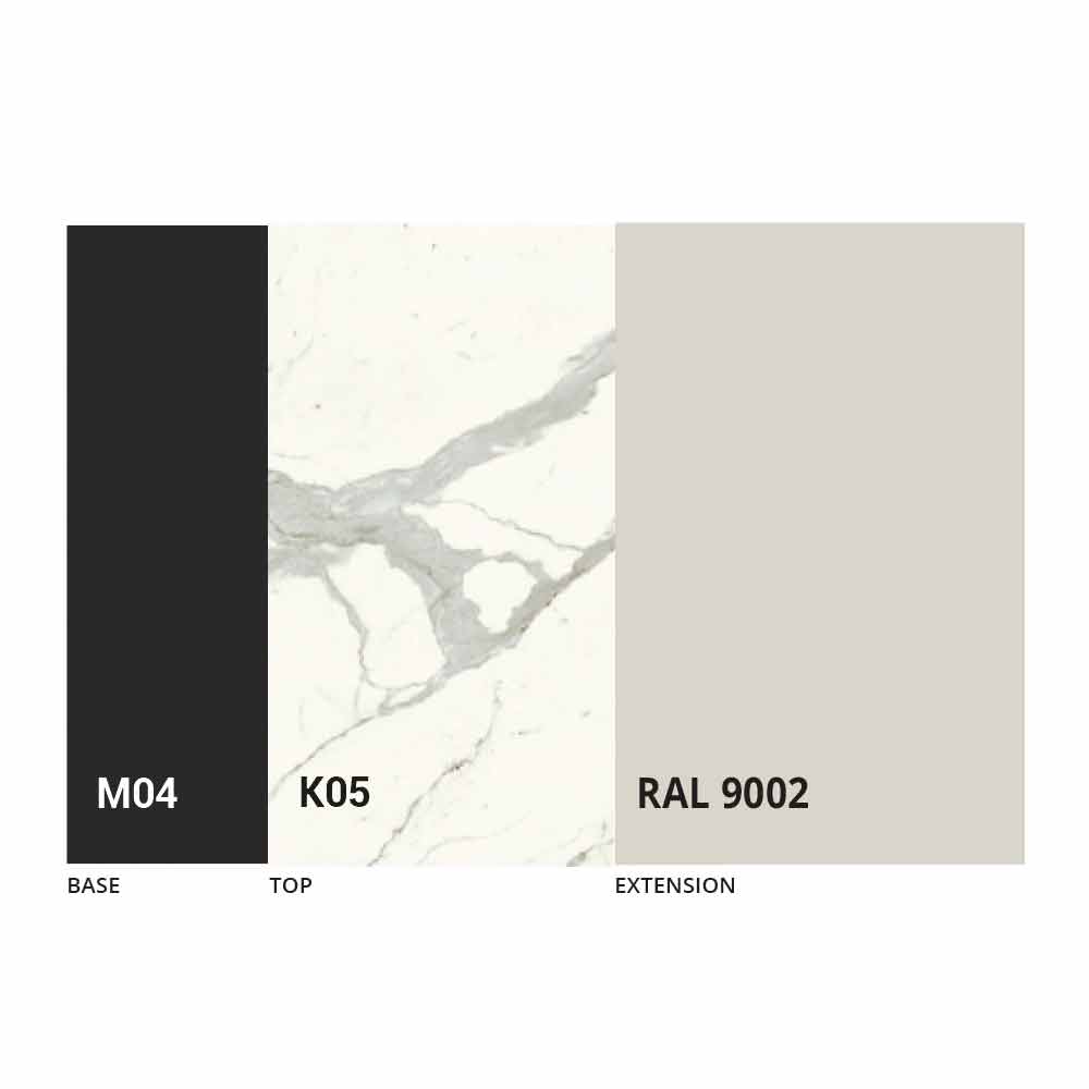Pjesa e sipërme, zgjatimi dhe baza e tavolinës mund të personalizohen me përfundime të ndryshme të mostrave. Për informacion, na kontaktoni duke përdorur formularin " Kërkoni informacion ".