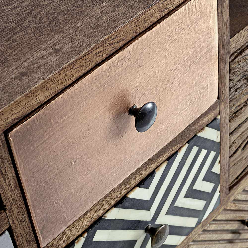 Bufe me dru mango dhe akacie të ricikluar me 2 dyer dhe sirtarë të dizajnit etnik.