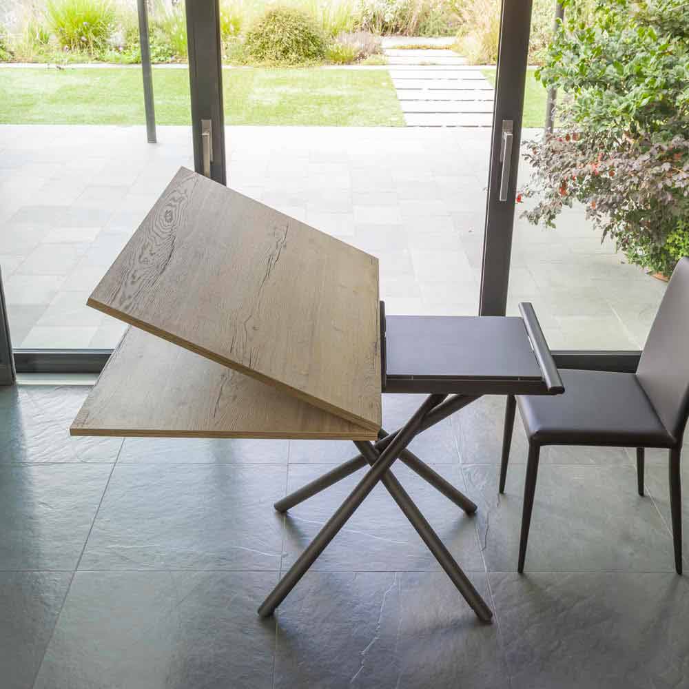 Tavolinë kafeje e konvertueshme prej metali dhe druri e prodhuar në Itali.