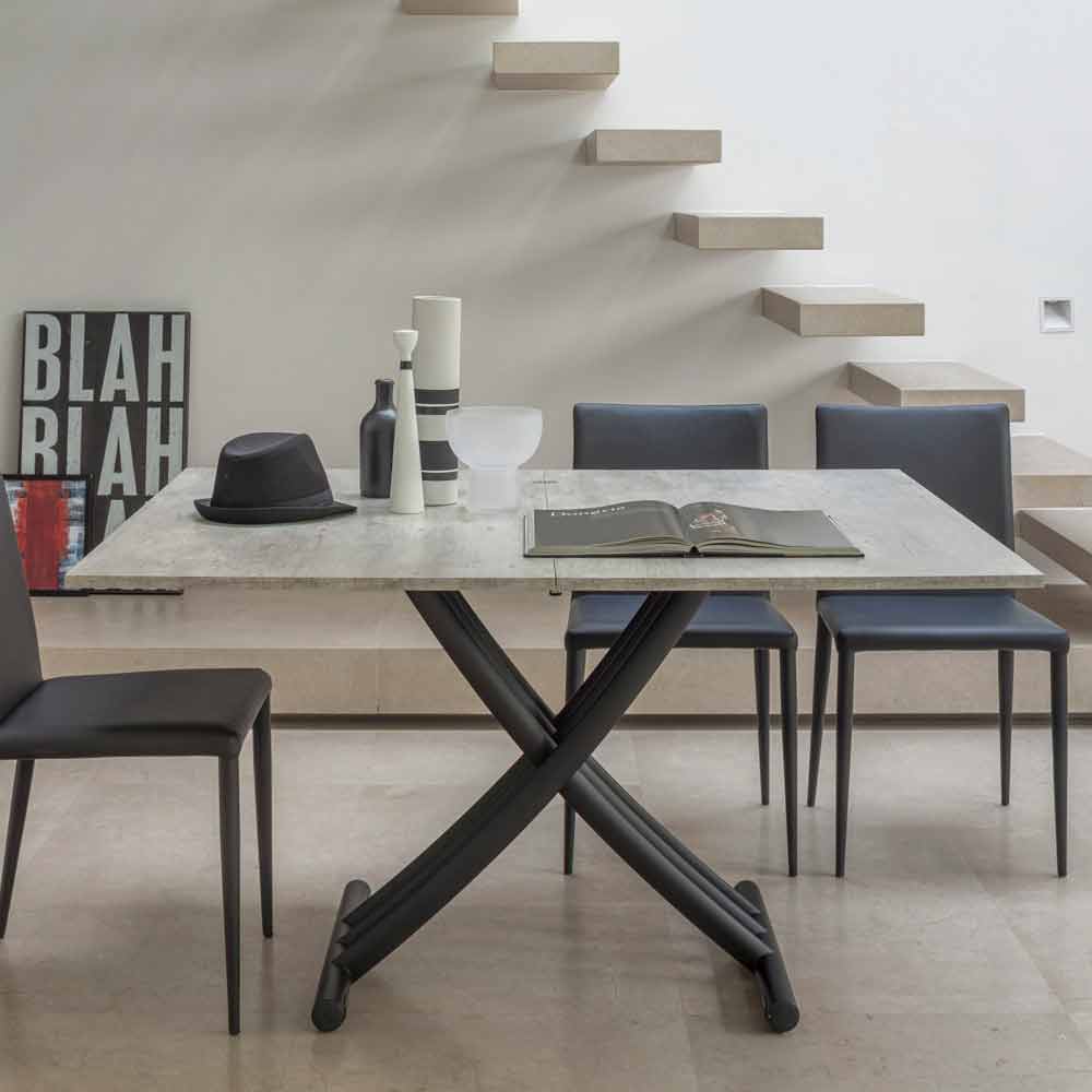 Tavolinë kafeje e transformueshme në pjesën e sipërme metalike dhe druri të prodhuar në Itali.