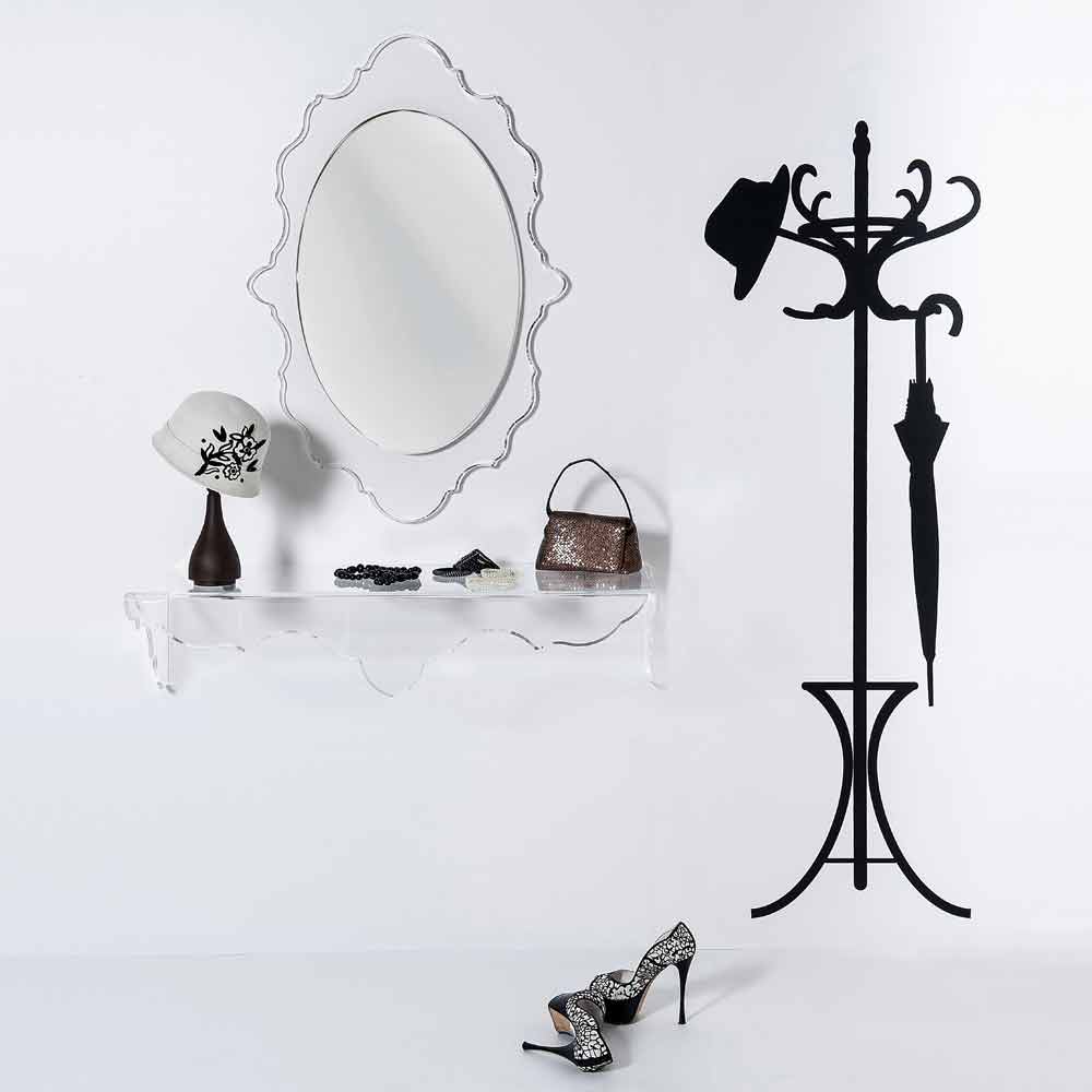 Tabela konzollë e fiksuar në mur me një dizajn modern Bianca, me ngjyra transparente Një dizajn i frymëzuar nga nouveau Art karakterizon tastierën Bianca, e bërë në PMMA 100% nga pleksiglasi i polimerëve të vergë, në formë lazeri dhe termoformuar. Ai duhet të jetë i fiksuar në mur me 2 montues të murit të çelikut tecnodesign. Karakteristikat e pleksiglës (izolim termik i papërshkueshëm nga uji, i papërformueshëm, i pandryshueshëm, izolimi termik) e bëjnë këtë artikull një pjesë mobiljesh shumë të gjithanshme. Shkëlqimi dhe shkëlqimi i saj mbeten konstante dhe të pandryshuara me kalimin e kohës. Plexiglasa PMMA nga polimeret e virgjëra të përdorura është jo toksike, hipoallergjike, pa erë dhe anti-bakteriale. 100% e riciklueshme, përputhet me UNI EN 71-3: 200. Projektuar , zhvilluar dhe prodhuarnë Itali me materialeitaliane .