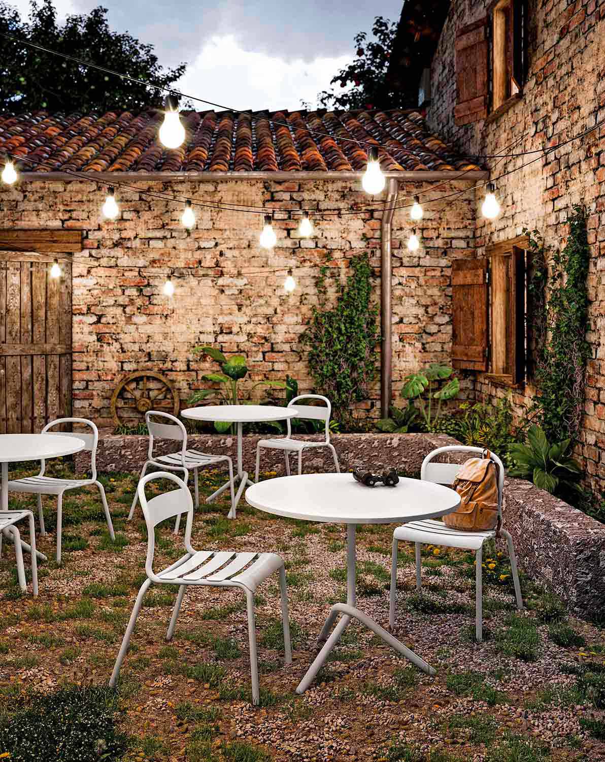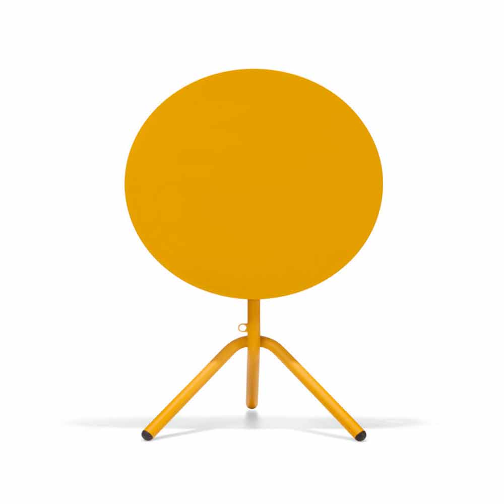 Tavolina e rrumbullakët e kopshtit me një dizajn novator dhe modern, të bërë me një strukturë metalike tubi , e cila veçohet falë veçantisë së këmbëve të ndërthurura që e bëjnë atë të fortë dhe të ngurtë në të njëjtën kohë. Në vend të kësaj është bërë prej fletë metalike e disponueshme në 6 variante ngjyrash dhe në dy diametra të ndryshëm, duke e lejuar kështu që të përshtatet në çdo mjedis duke i dhënë ngjyrë dhe gjallëri. Shtë një artikull që mund të paloset me lehtësi poshtë dhe të grumbullohet në horizontale, duke bërë kështu të mundësohet optimizimi i hapësirave në mënyrën më të mirë.
