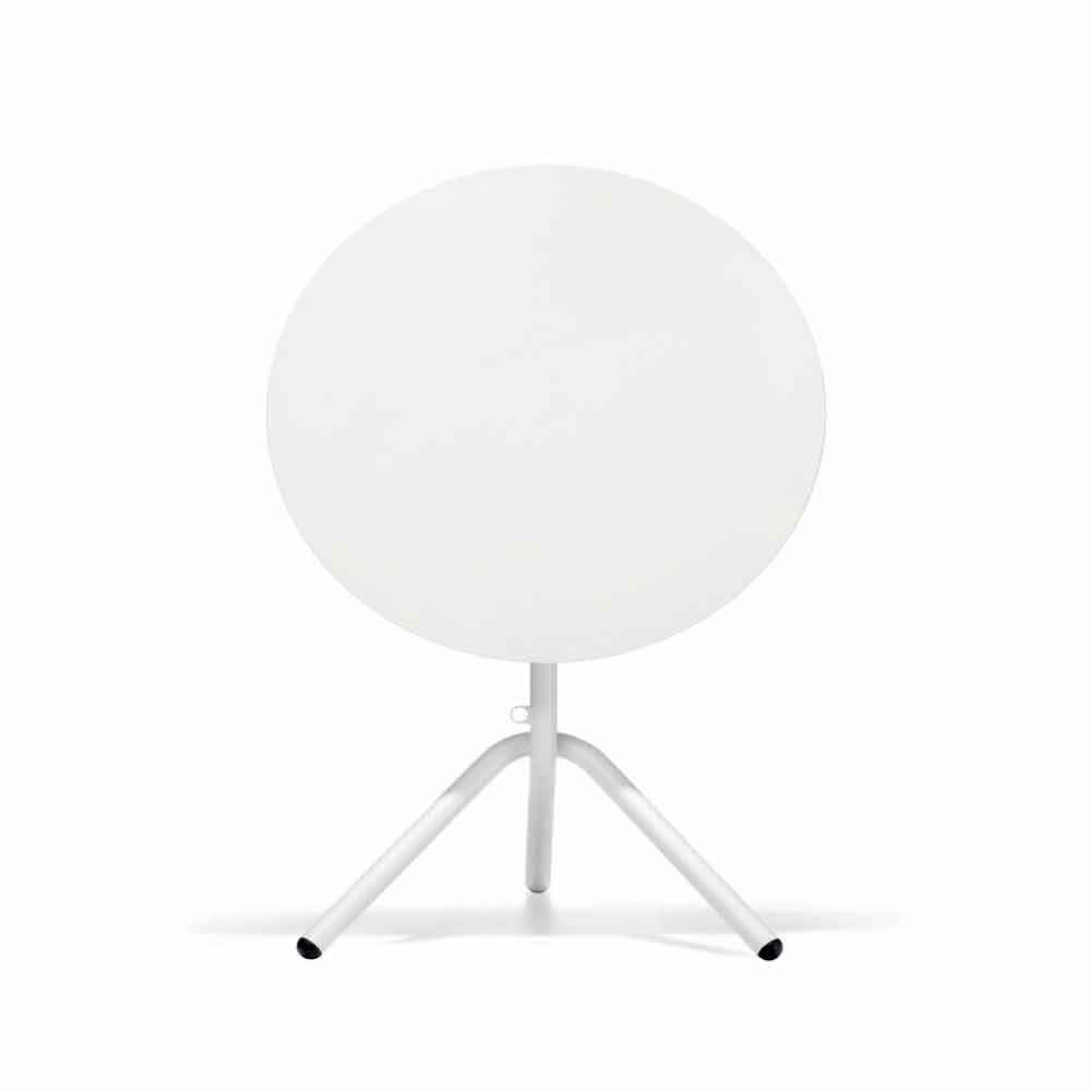 Tavolinë e rrumbullakët në natyrë në fletë metalike dhe fletë stackable dhe të palosshme Made in Italy.
