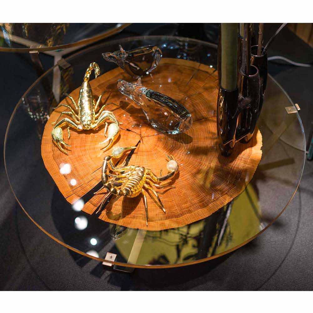 Tabela moderne e kafesë Bigo, me xhami dhe majë druri, e bërë në Itali. Tavolinë kafeje me dizajn modern. Bigo është pjesë e koleksionit Glass & Wood. Pjesa e sipërme është e përbërë nga dy shtresa (5 cm + 5 cm) qelqi i bashkuar, që përmban një pjesë të drurit të prerë nga koka. Me këmbë bronzi të djegura prej bronzi. Kjo tryezë kafeje me dizajn modern është në dispozicion në përfundime të tjera, si për këmbët ashtu edhe për pjesën e sipërme. Për të kërkuar një citat të personalizuar, na kontaktoni në info@viadurini.co.uk.