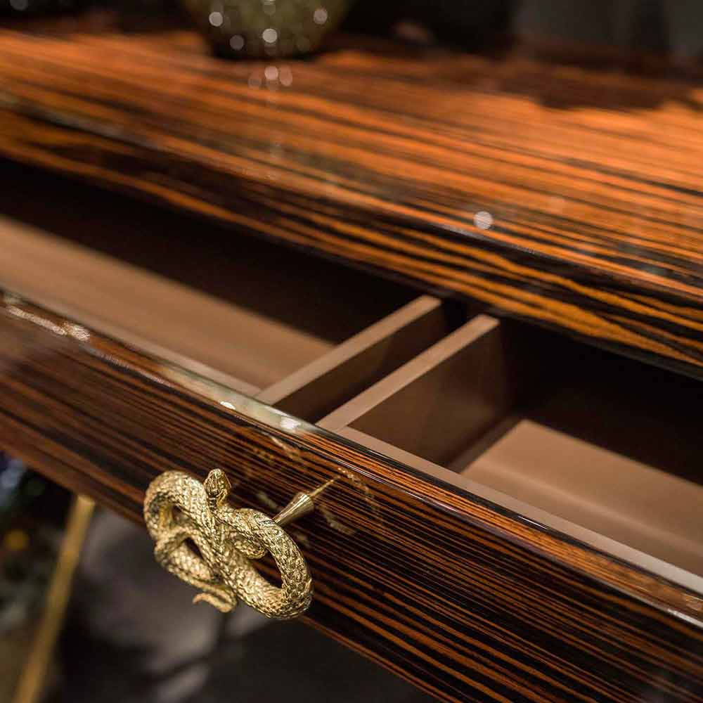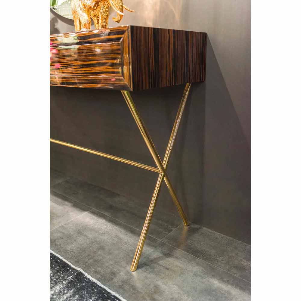 Tabela moderne e konzollës Ada 4, me mbathje rrëshqitëse, të bëra me shkëlqim me shkëlqim. Tabela e konzollës për arredim modern dhe bashkëkohor. Ada është pjesë e koleksionit Original Sin e krijuar nga stilisti Giorgio Ragazzini. Ada 4 është bërë me shkëlqim me shkëlqim ose nënë të bardhë me perla, kryqëzim 45 °. Me dy sirtarë të brendshëm dhe varet të buta Salice. Front me dorezë në shkrirjen e bronzit, ngjyrë ari. Korniza e tryezës është në metal të galvanizuar të artë me shkëlqim 24k. Tabela e tastierës Ada 4 është gjithashtu e disponueshme në versionin e bardhë të nënës së perlave: kërkoni një citat në info@viadurini.co.uk.