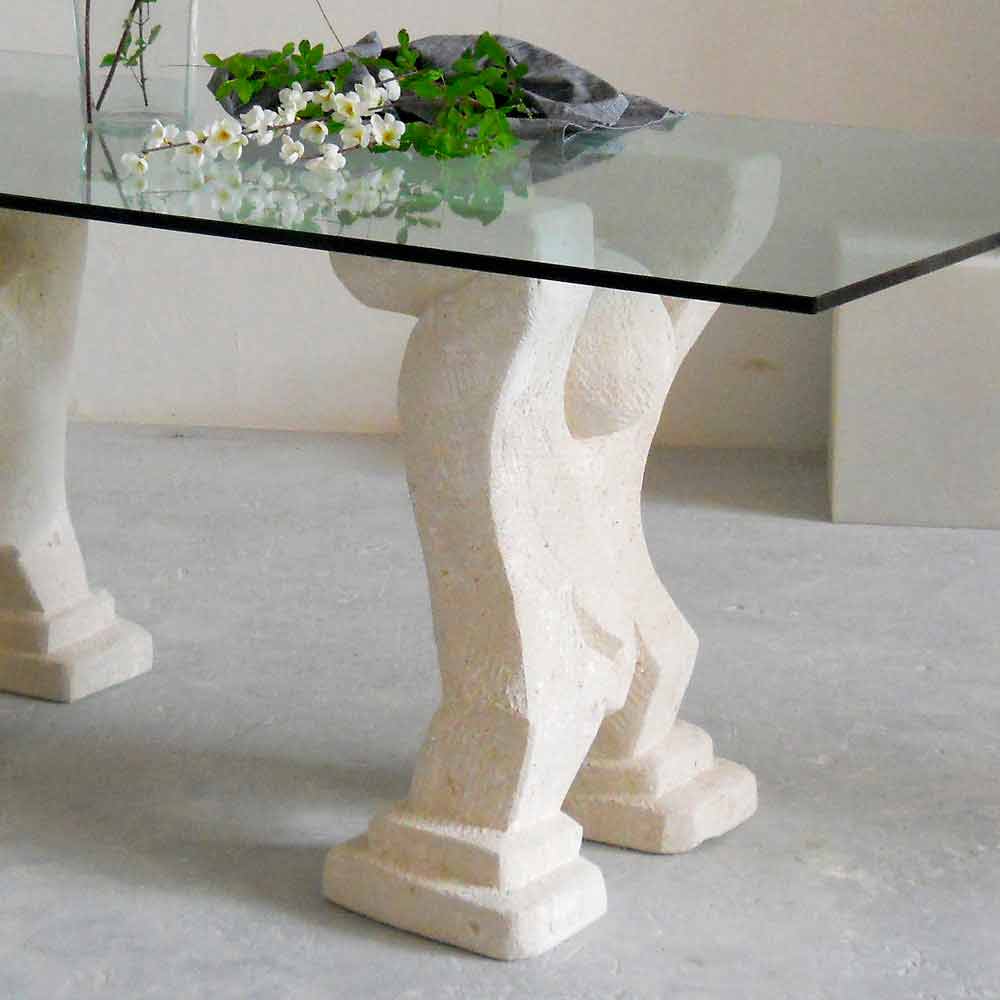 Tabela e ngrënies Medusa është bërë plotësisht në Itali. Baza e saj është prej guri natyror Vicenza dhe është gdhendur me dorë nga blloku origjinal i gurit. Pjesa e sipërme e tryezës është bërë nga kristali float (trashësi 15 mm) e shtruar në bazë.