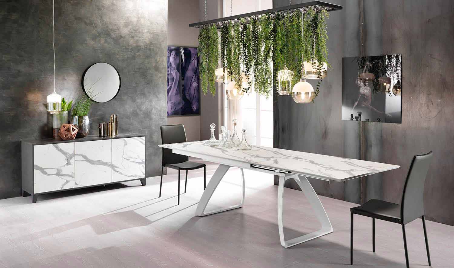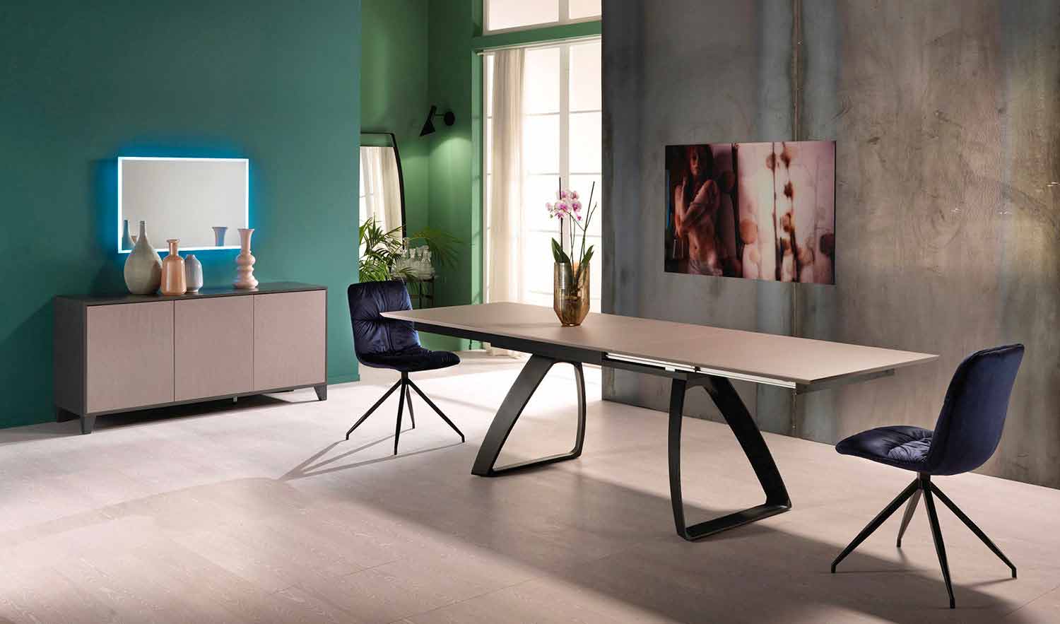 Tavolinë e zgjatur e ngrënies me këmbë metalike, Villongo