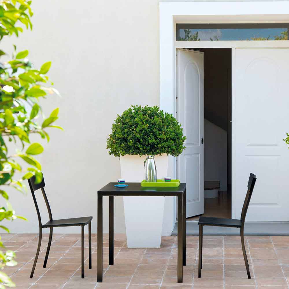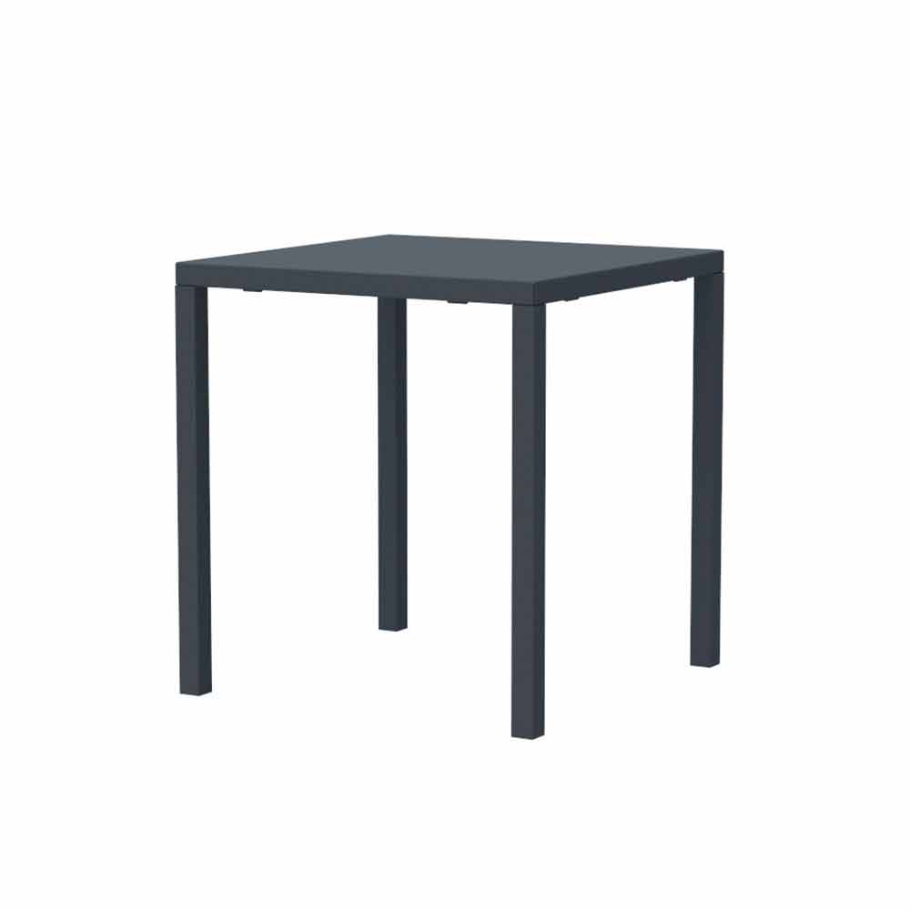 Tavolinë katrore për jashtë, prej hekuri të galvanizuar me shtresë pluhuri, vetëniveluese dhe e grumbullueshme, e prodhuar në Itali.