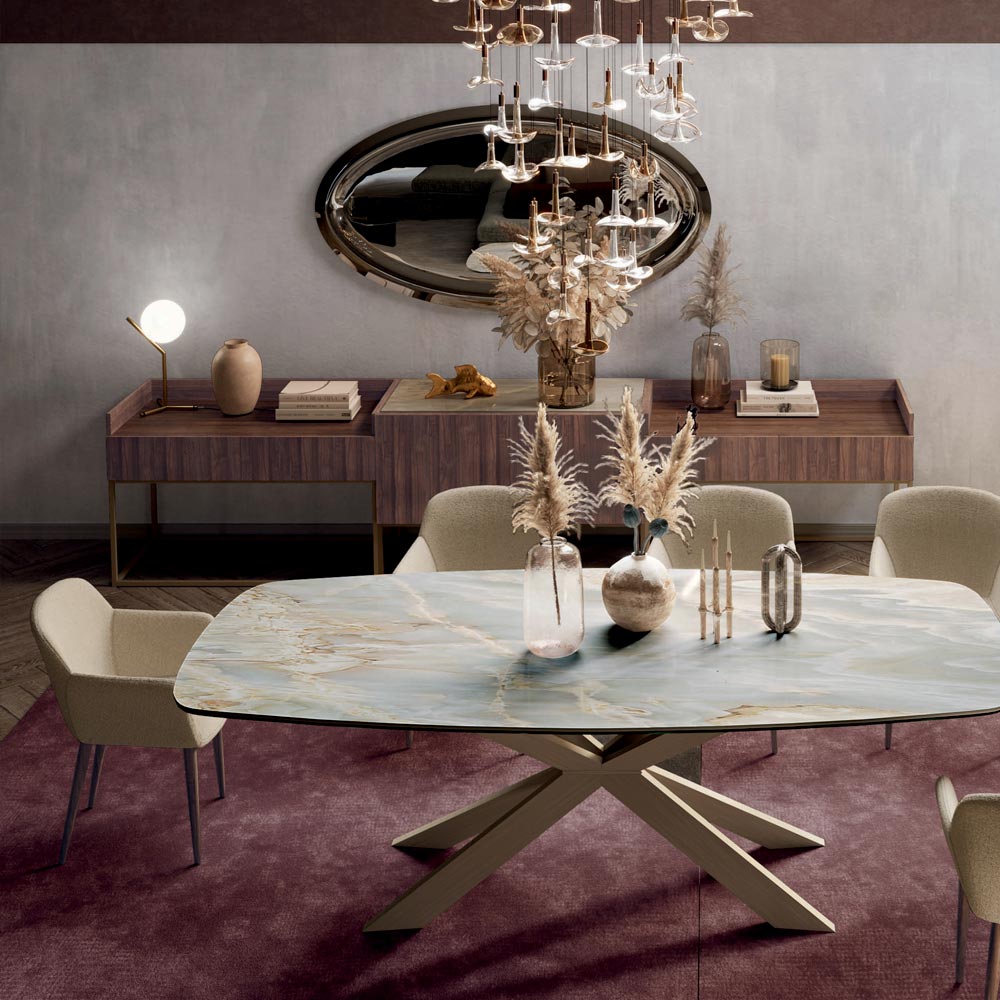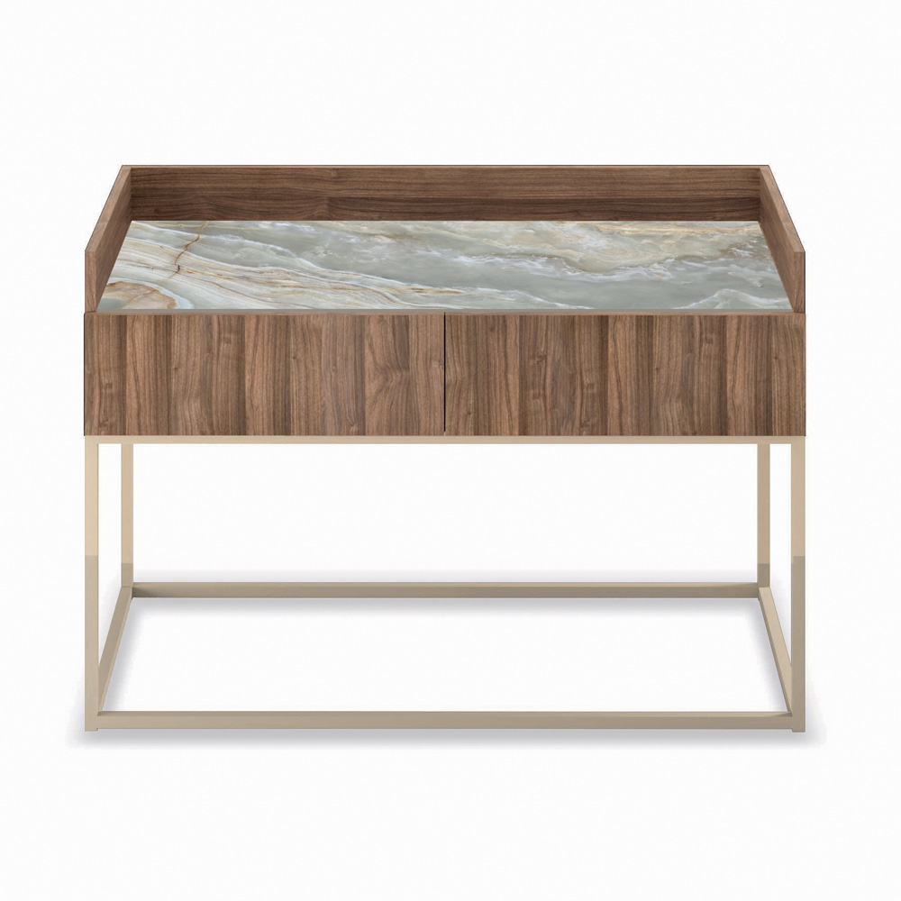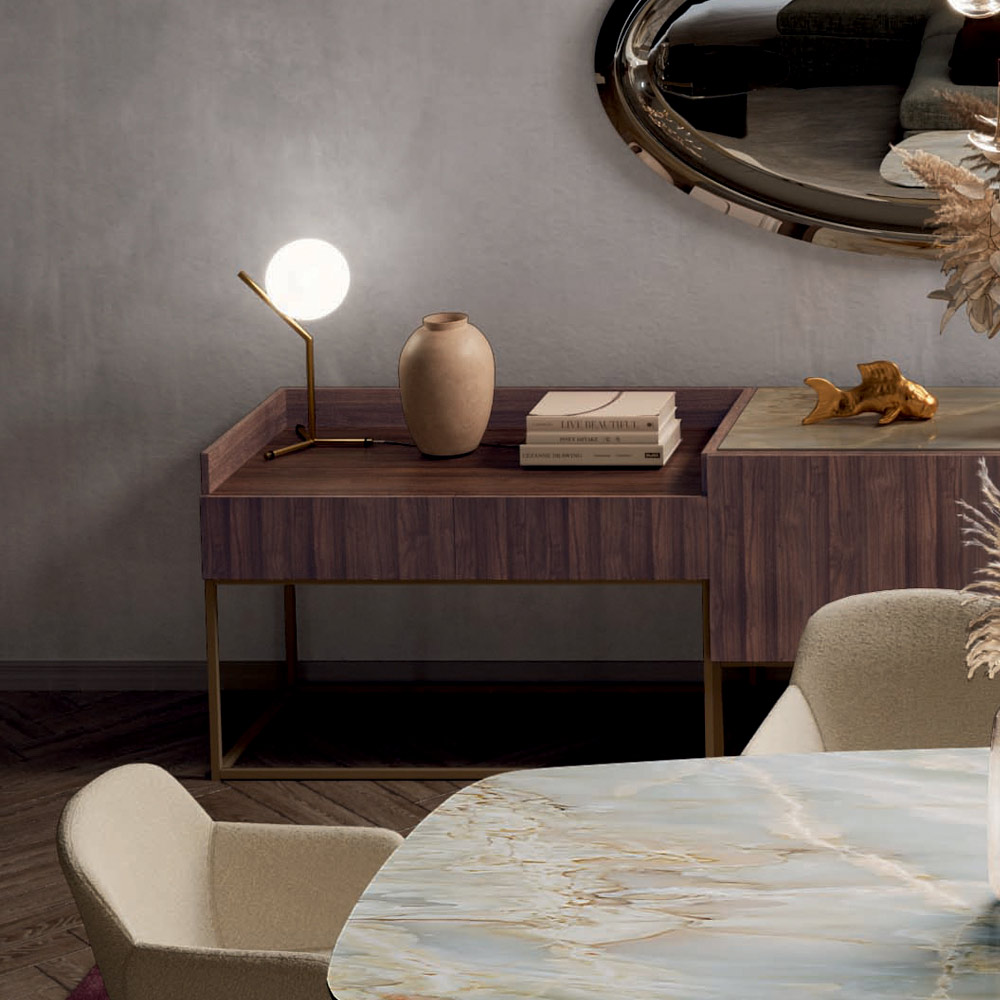 Bofoni i dhomës së ndenjes i bërë tërësisht prej blloqe bredhi me trashësi 18 mm të rimeso brenda dhe jashtë me arre Canaletto të lyer në fundin e arrës Canaletto. Paneli i pasmë i përforcuar dhe i përfunduar dhe pjesa e sipërme prej qeramike ose druri . Dyer me hapje shtytëse dhe tërheqëse . Baza është në çelik shampanjë me këmbë të rregullueshme. Ky komplement dekorativ elegant për zonën e ndenjes ofron funksionalitet të madh, si dhe një estetikë magjepsëse dhe të përjetshme , duke u dëshmuar të jetë zgjidhja ideale e arredimit për ata që kërkojnë një mobilje elegante dhe praktike në të njëjtën kohë. Një dizajn i gjithanshëm dhe origjinal i krijuar për të pasur përdorime të ndryshme brenda zonave të ndryshme të shtëpisë, duke kompletuar arredimin në një mënyrë ekskluzive bazuar në shijet dhe nevojat tuaja.