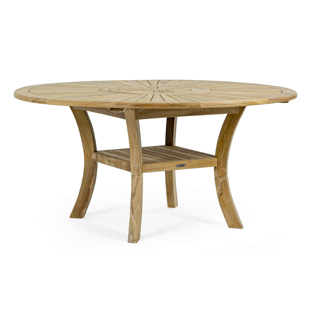 Tavolinë cilësore për ngrënie në natyrë në dru tik me majë qendrore të kthyeshme