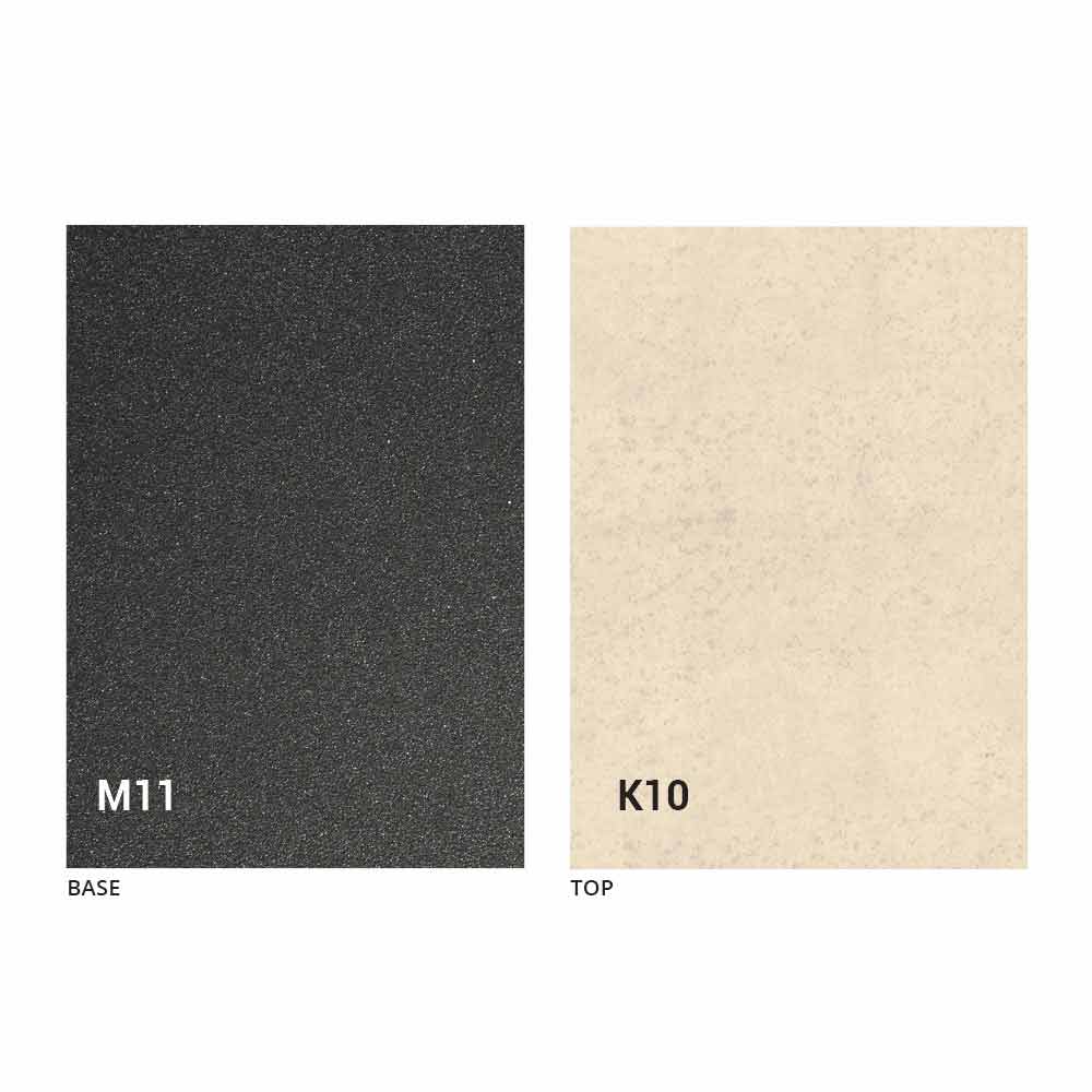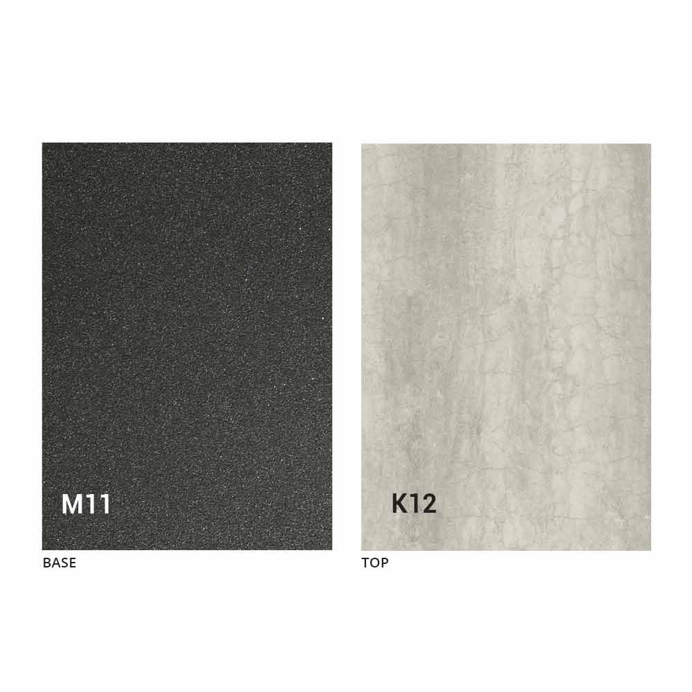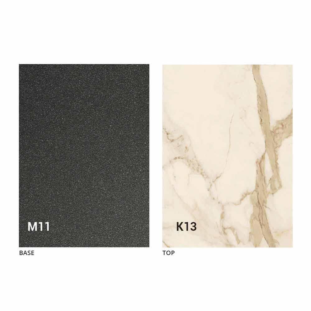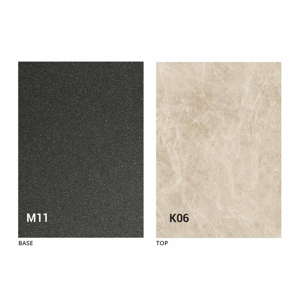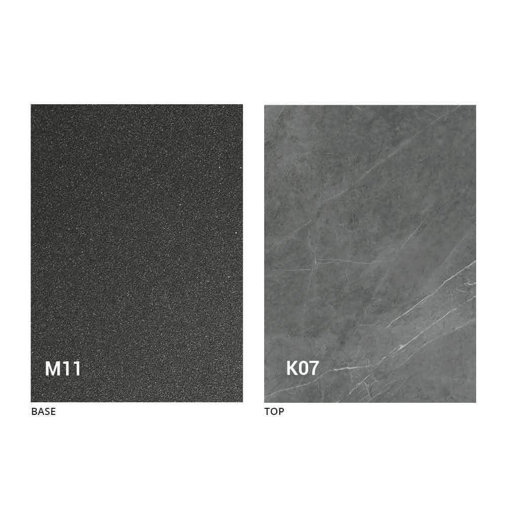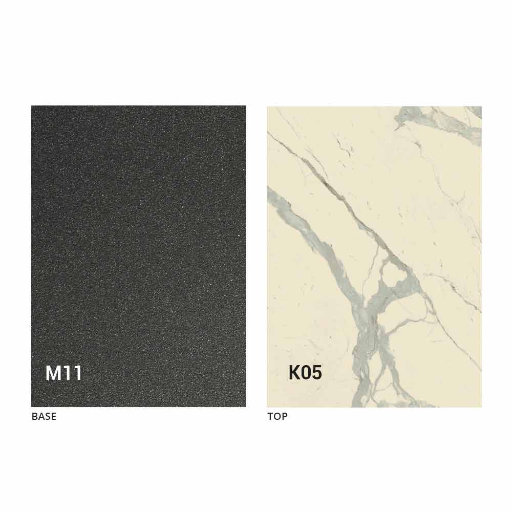 një pjesë të sipërme paneli MDF me qeramikë laminam në sipërfaqe, e disponueshme në përfundime të ndryshme dhe një