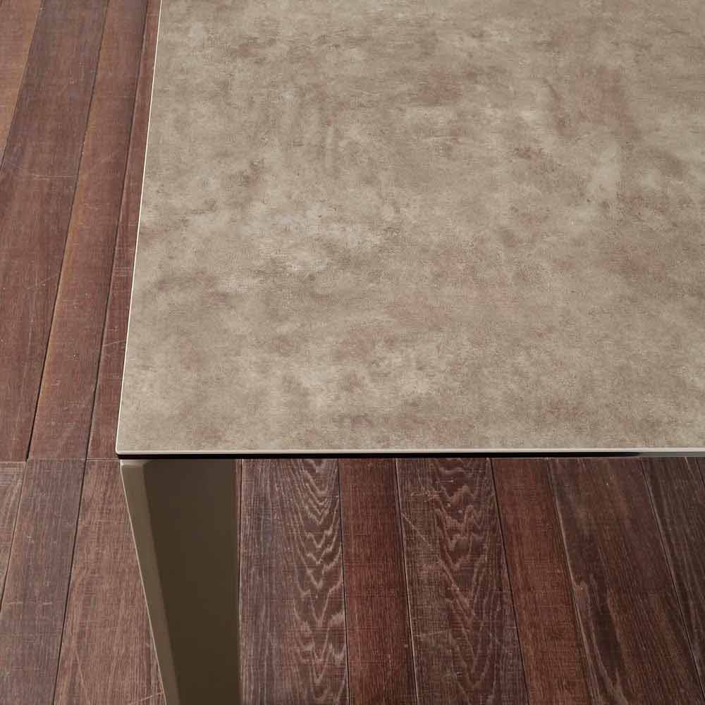 Isshtë bërë me një strukturë metalike të pikturuar të disponueshme në katër ngjyra të ndryshme dhe një majë qeramike prej xhami me qelq të trashë 8 mm dhe qeramikë të trashë 3 mm. Ngjyrat: - breshkë baltë; - mermer i bardhë; - Gri betoni; - Antraciti. Pjesa e sipërme dhe struktura janë pikturuar në të njëjtën ngjyrë. Qeramika bashkohet termikisht me xhamin e bluar, duke i dhënë formë një materiali që është shumë rezistent ndaj goditjeve, prerjeve, prerjeve dhe temperaturave të larta.