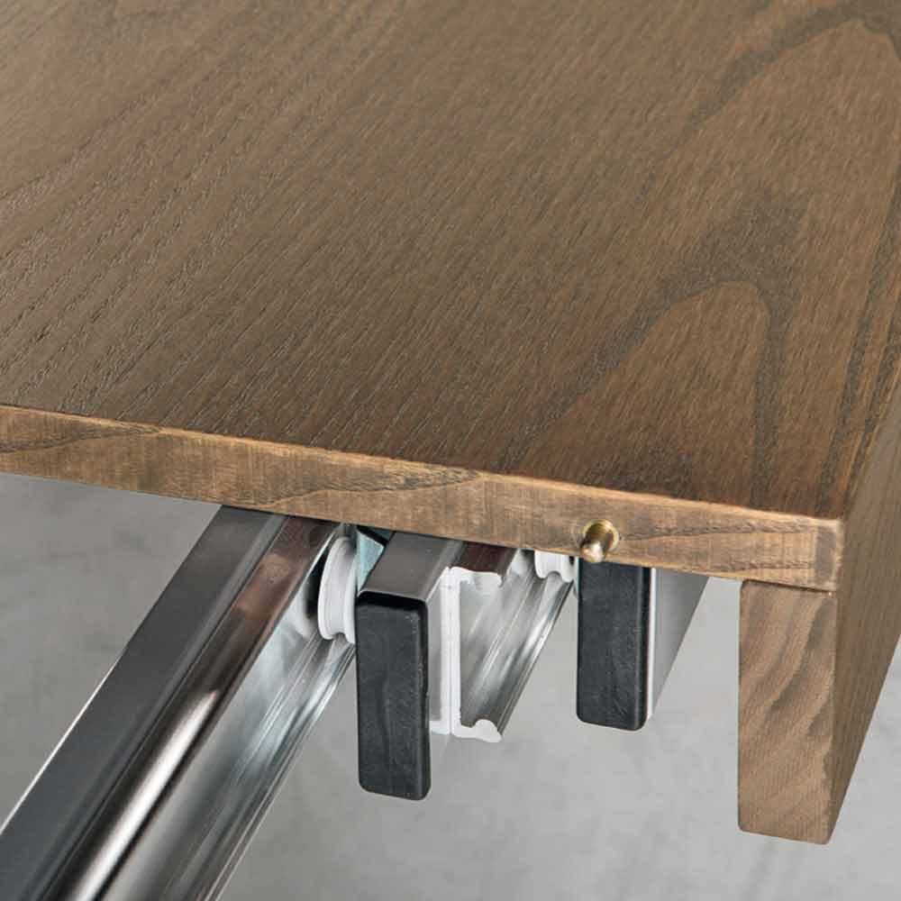 Përbëhet nga një urë këmbësh prej druri të fortë hiri të pajisur me rrota me një kornizë metalike të lyer me rrëshqitje anësore; brenda ka 3 zgjatime nga 60 cm secila.