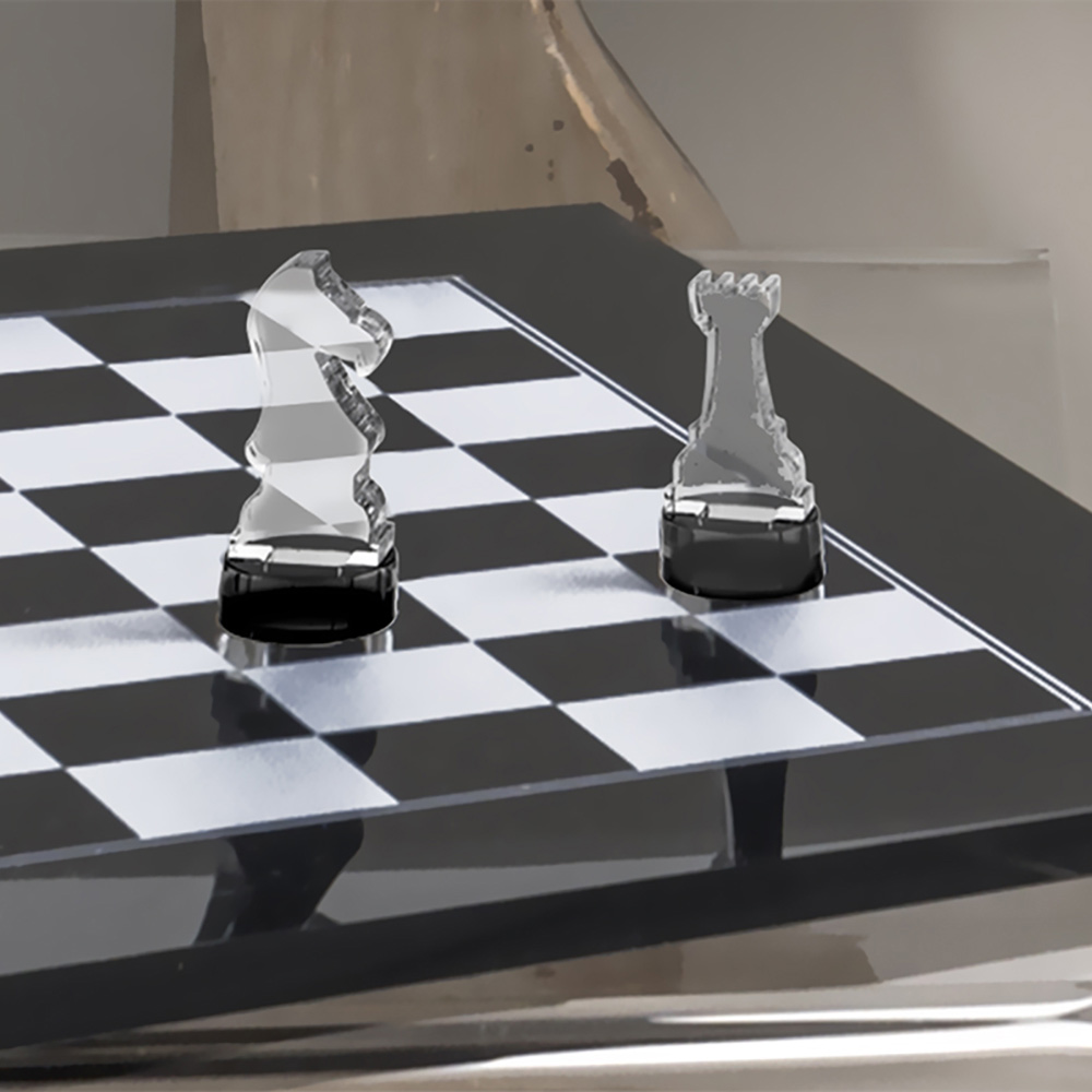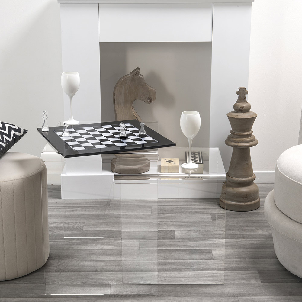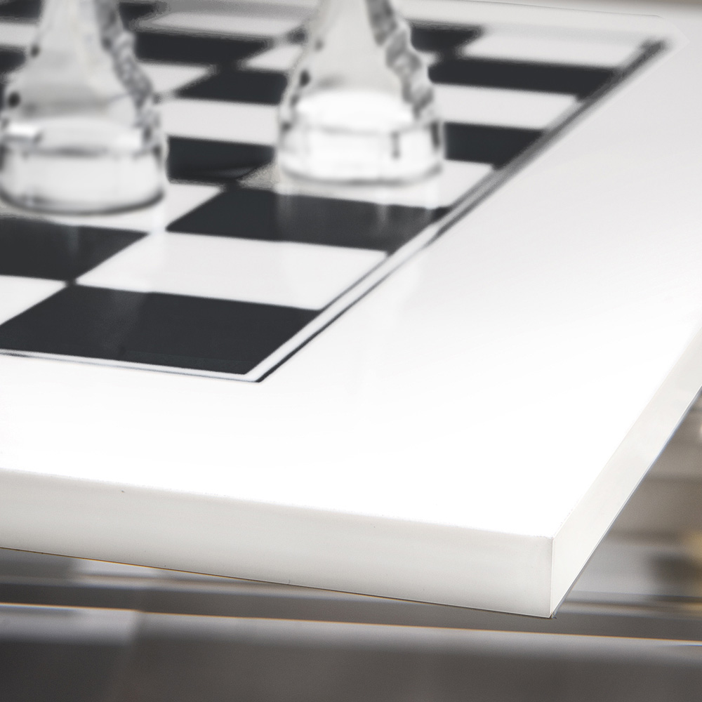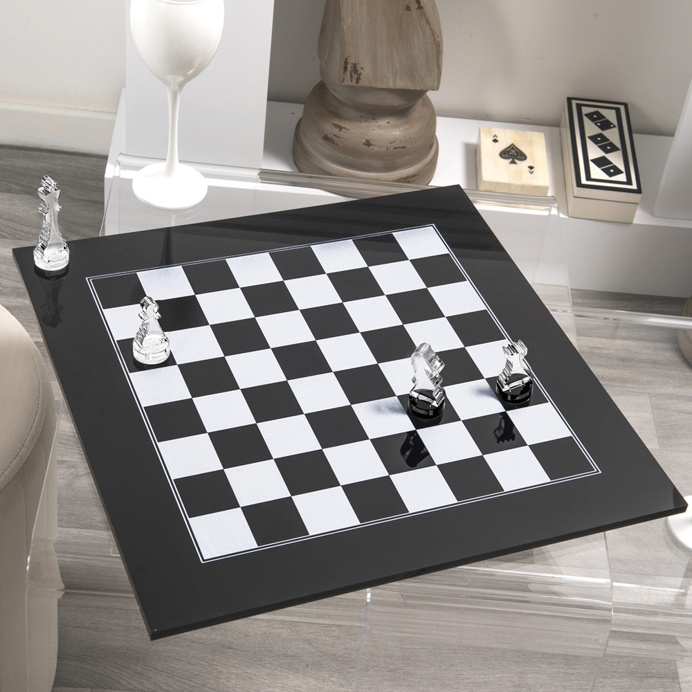 Tabelë shahu në pleksiglas të bardhë ose të zi Prodhuar në Itali.