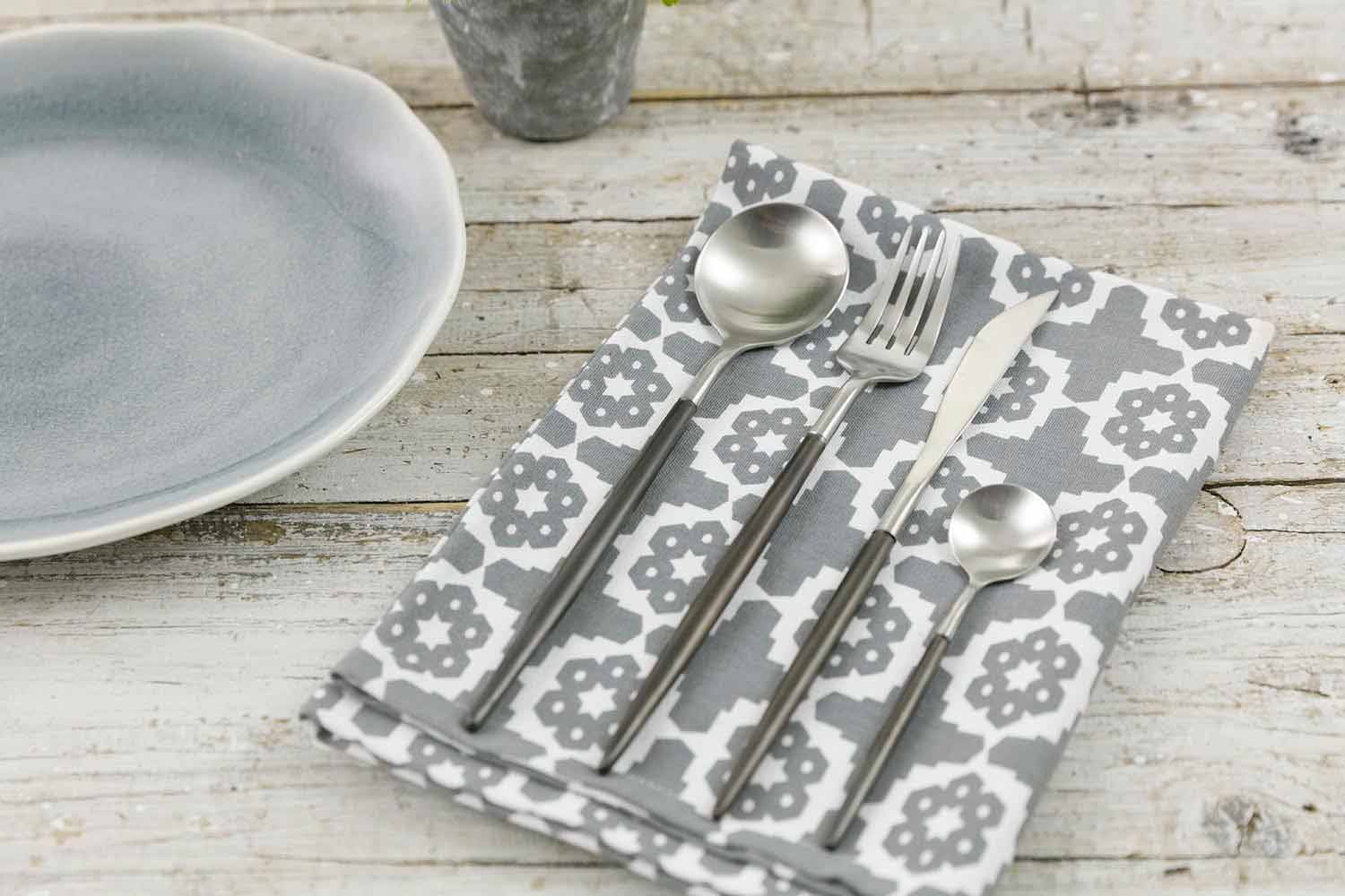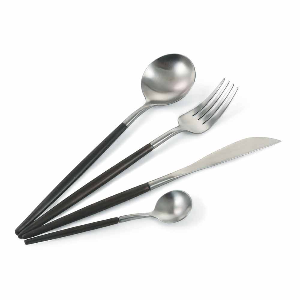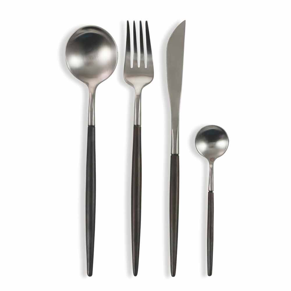Seti përbëhet nga: 6 pirunë, 6 thika, 6 lugë dhe 6 lugë çaji