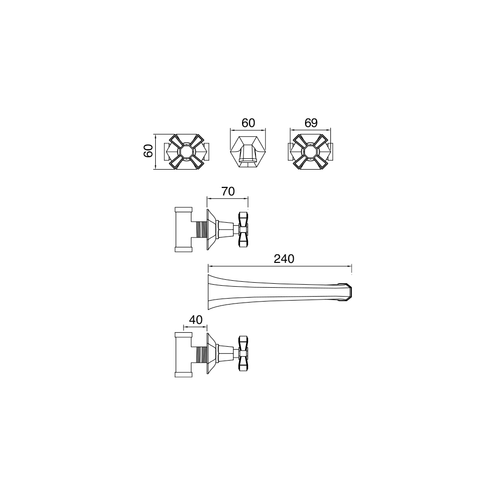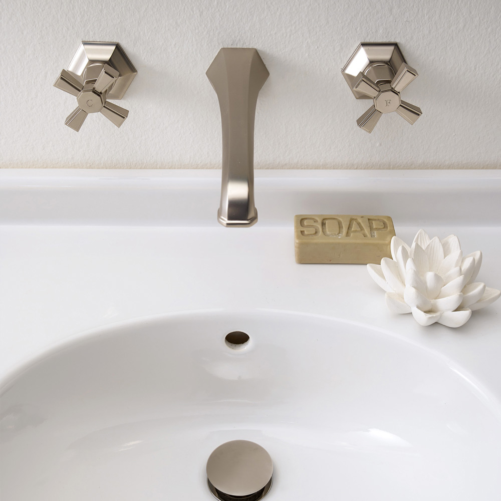 rubinet funksional dhe inovativ për lavaman ose lavaman në mur me tre vrima , prej bronzi.