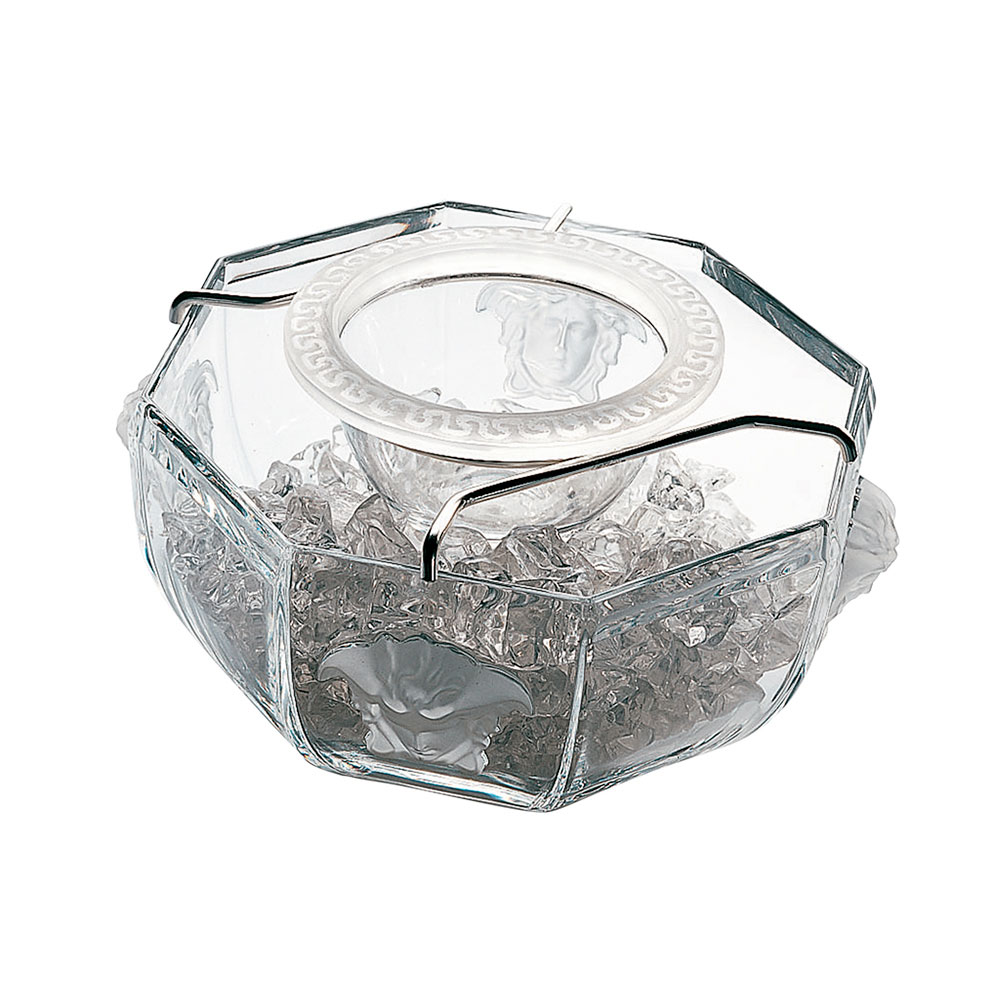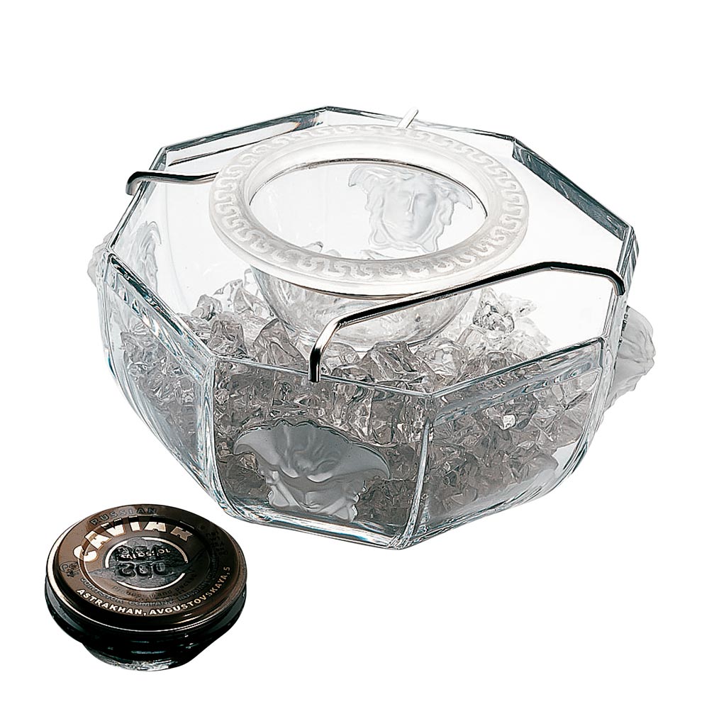 Kënaquni me sofistikimin e plotë të tasit me haviar Medusa Lumière nga Versace , një kryevepër në kristal të pastër që ndërthur elegancën e përjetshme me luksin modern . Kjo pjesë ekskluzive, e zbukuruar me fytyrën ikonike të Medusës në reliev, është krijuar për të përmirësuar çdo detaj të tryezës tuaj, duke e bërë çdo rast unik. Transparenca e kristalit bie në kontrast të bukur me detajet dekorative, ndërsa struktura e fytyrës shton një prekje lulëzimi dhe shkëlqimi.