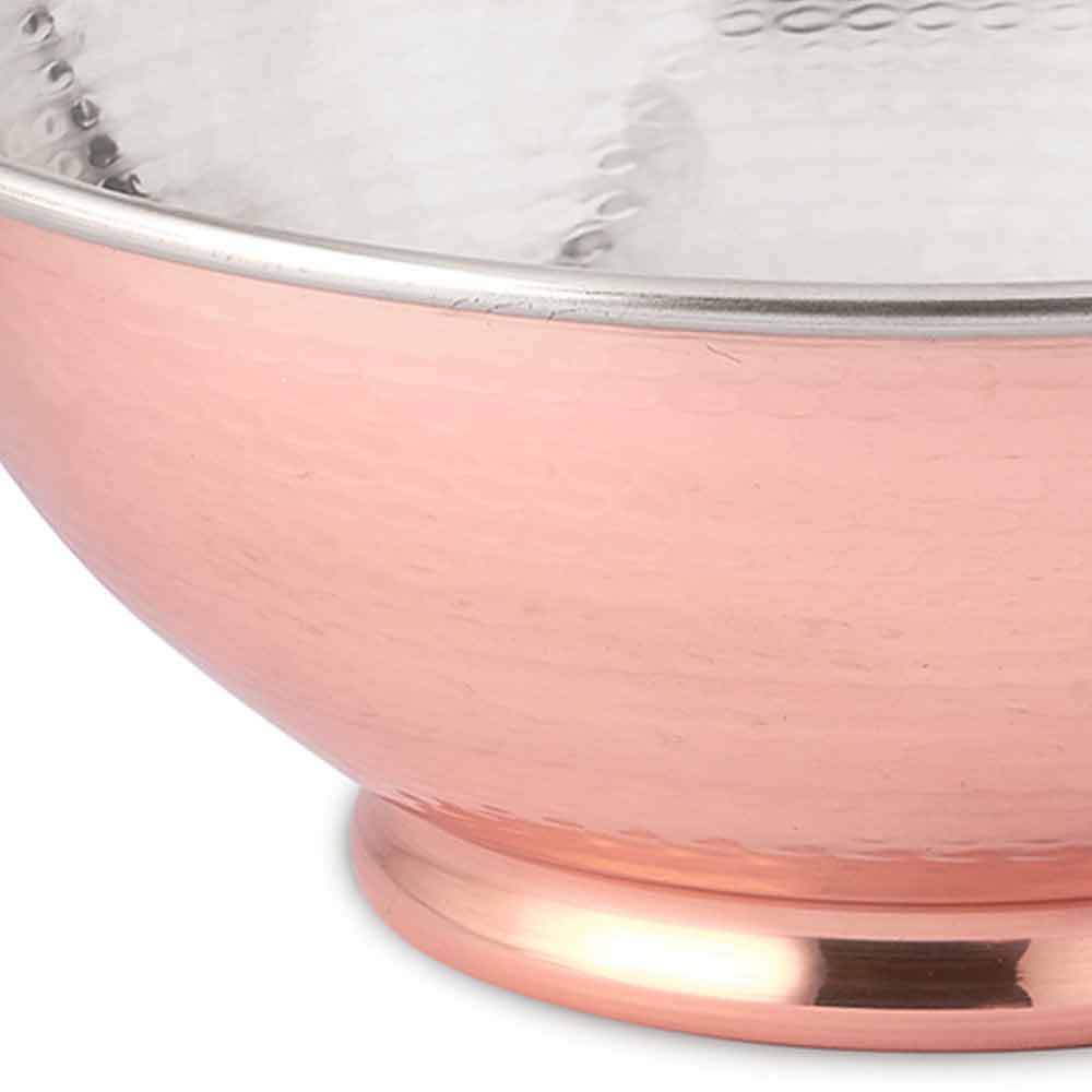 Sallatë e rrumbullakët në bakër të lëmuar me çekan me dizajn të punuar me dorë, prodhuar në Itali.