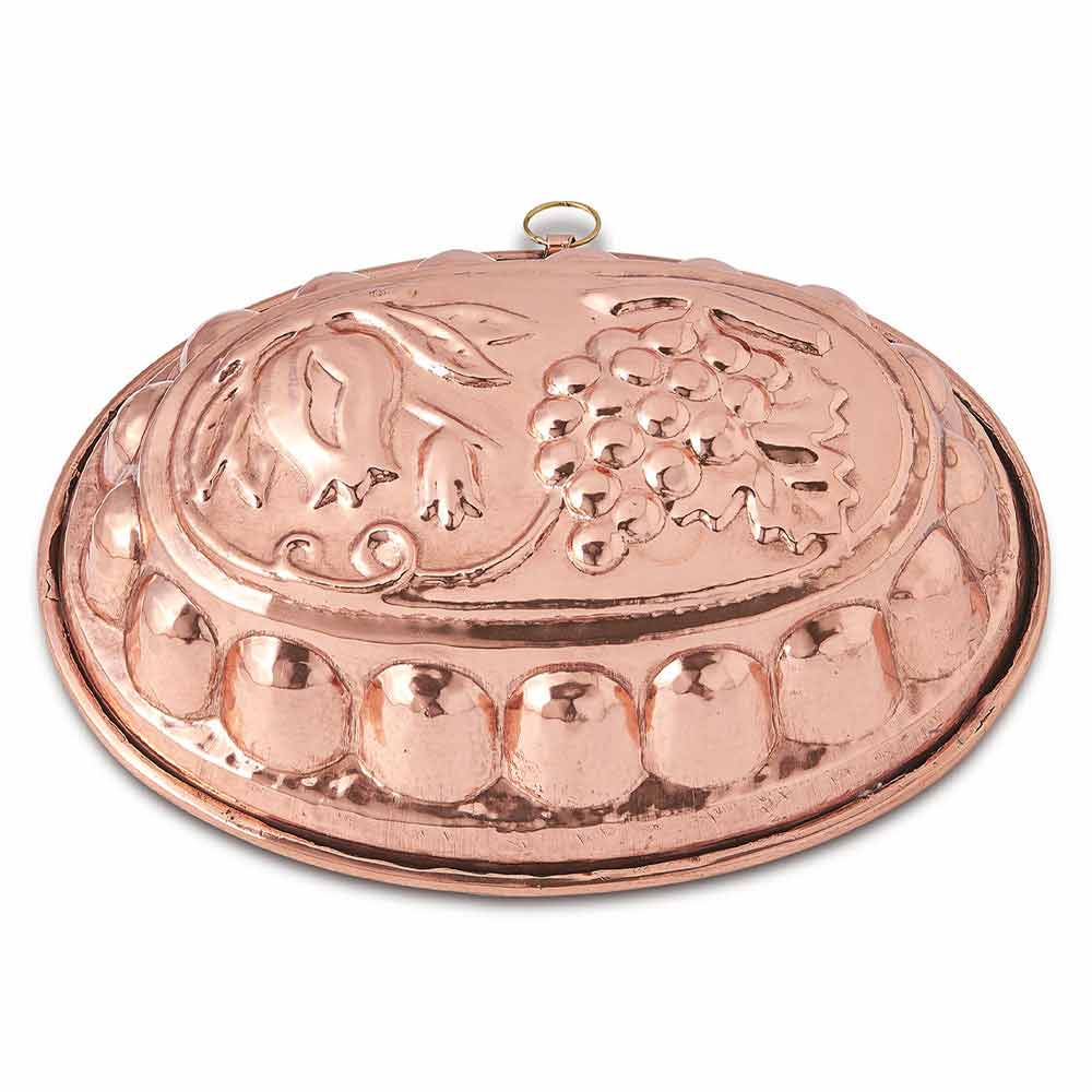 Tepsi ovale me dekorim rrushi ne dore bakri i konservuar ne Itali.