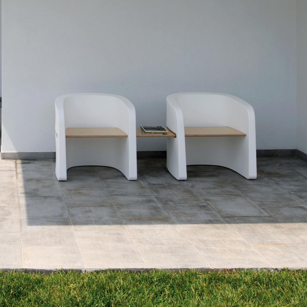 dru thupre e cila gjithashtu gjeneron një sipërfaqe mbështetëse praktike midis dy sediljeve. Një ide e mobiljeve