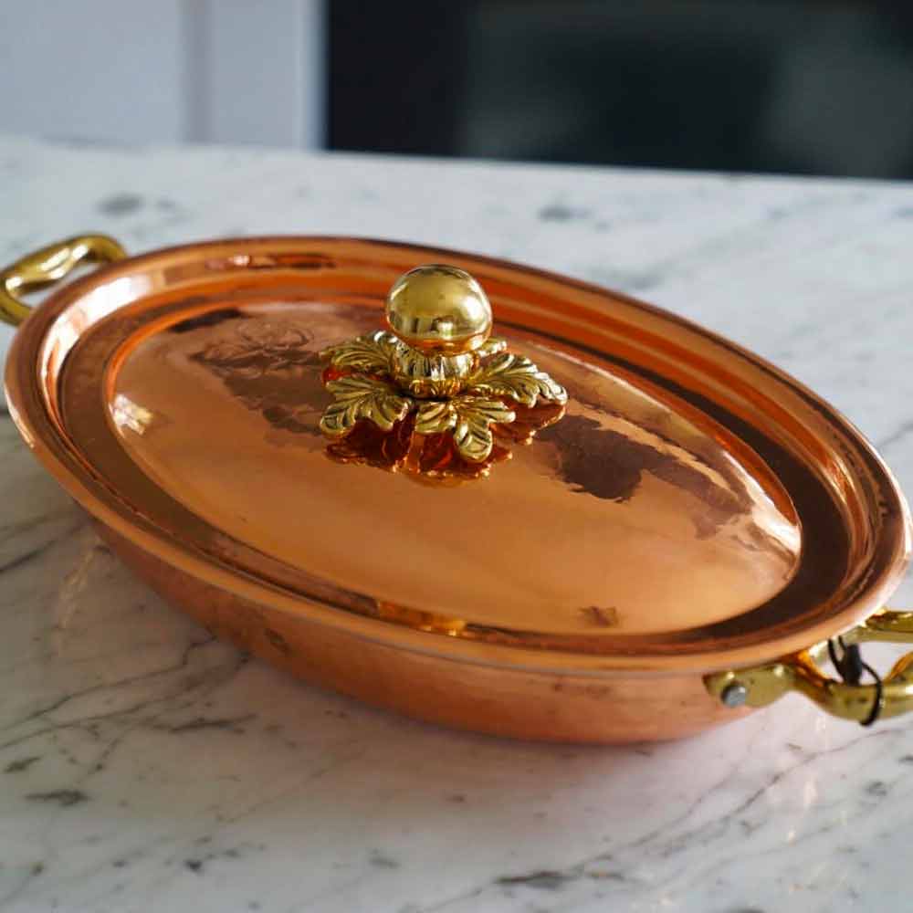 Tepsi ovale me kapak,punim bakri i konservuar me dore me doreza tunxhi prodhim italia.
