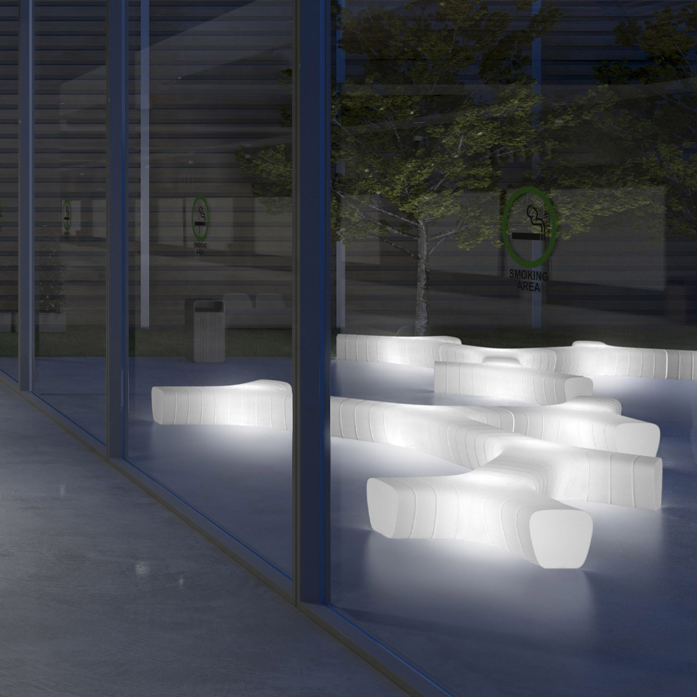 Stol ndriçues për përdorim në natyrëprodhuar tërësisht në Itali nga polietileni i errët i kompletuar me komplet drite LED . Një pjesë e mobiljeve e projektuar dhe konceptuar për të mobiluar hapësira të mëdha në natyrë. Forma e tij është ideale për krijimin ekompozimeve të artikuluara dhe dinamikeduke kombinuar disa elementë për tëkrijuar divane komode dhe komode. Sipërfaqja karakterizohet nga groove që krijojnë njëstrukturë elegante së bashku me efekte të mrekullueshme të dritës dhe hijes duke krijuar kështu një atmosferë delikate dhe mikpritëse . Ato gjithashtu japin një ndjenjë të vazhdimësisë kur disa module janë të vendosura së bashku, duke krijuar kështu një zgjidhje perfekte për mobilimin emjediseve të mëdha të jashtmeme personalitet dhe stil.E kompletuar me komplet fiksimi .