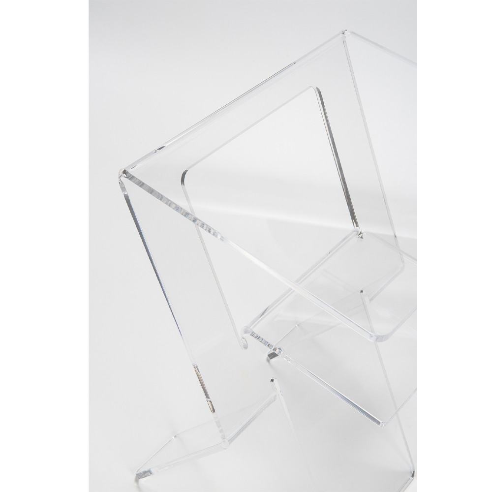 Kjo tavolinë divan është bërë tërësisht nga pleksiglas transparent i cili, falë karakteristikave të tij fiziko-teknike, e bën produktini përshtatshëm për mjedise të brendshme dhe të jashtme. Dizajni i tij diskret dhe linear ka një raft të dyfishtë për funksionalitet më të madh dhe nxjerr në pah shkëlqimin dhe shkëlqimin që mbeten konstante dhe të pandryshuara me kalimin e kohës.