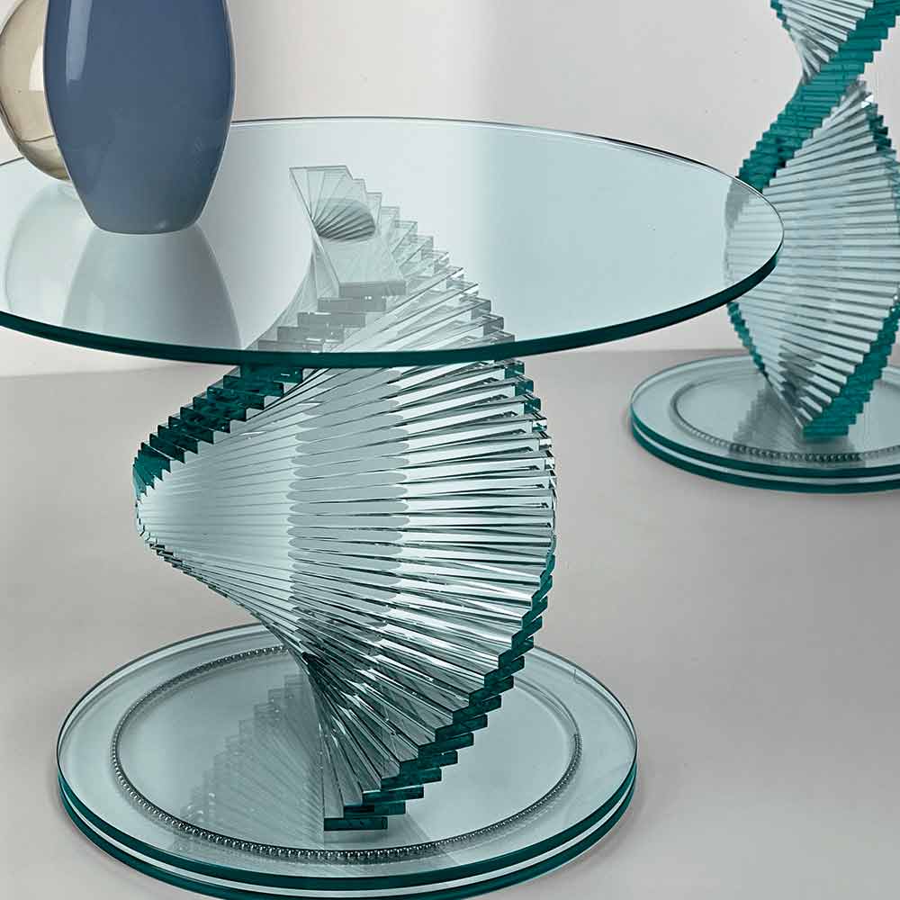 Kjo tryezë kafeje për dhomën e ndenjes karakterizohet nga dizajni i saj unik dhe jashtëzakonisht elegant i bërë plotësisht nga xhami transparent.