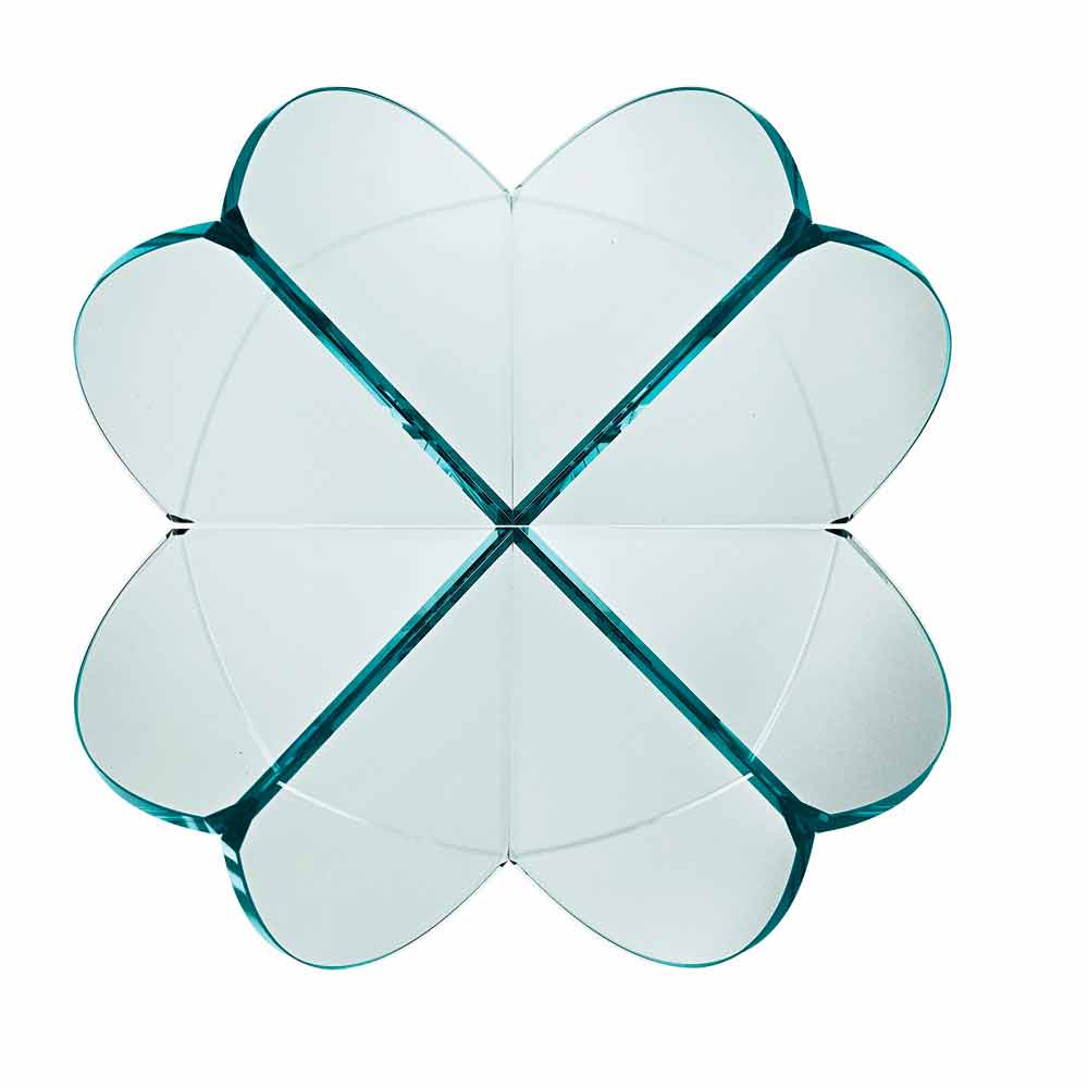 Rezultati përfundimtar është një pjesë e mobiljeve që të kujton një lule të çmuar , e krijuar tërësisht në xham të zbutur me një bazë të gdhendur në acid.
