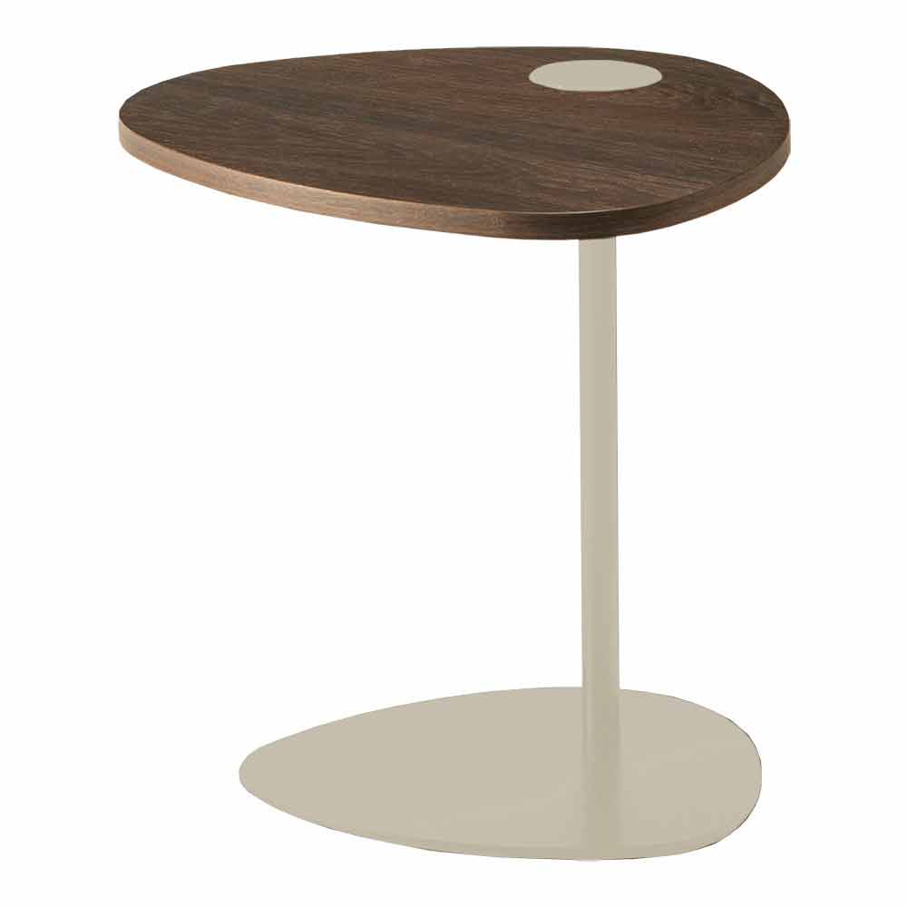 tryezë anësore e divanit për dhomën e ndenjes është e frymëzuar nga format e parregullta dhe natyrore të guralecave të zbutura nga uji. Linjat e veçanta dhe interesante ndryshojnë për të rritur dhomën dhe për t'i dhënë asaj një nuancë të përsosjes.